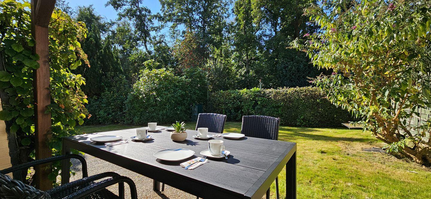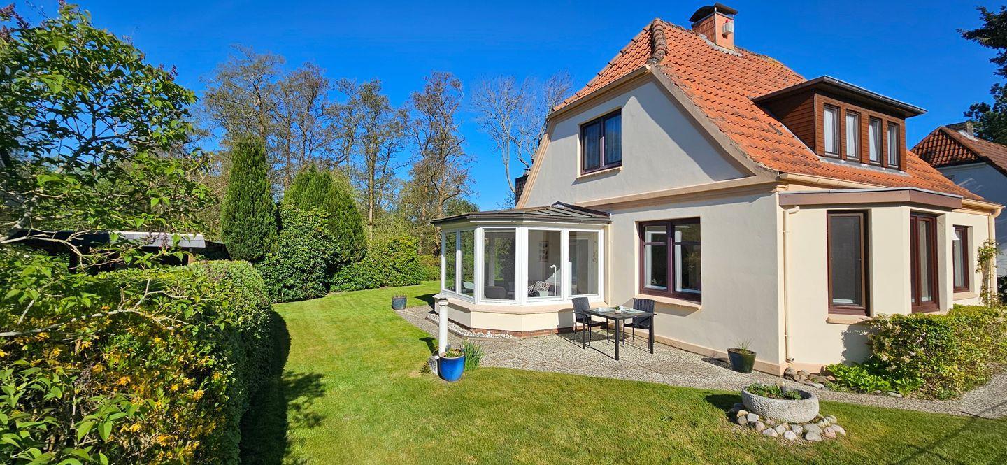 Ein großer Garten, der hinter dem Haus an ein kleines Wäldchen grenzt, lädt zum Entspannen oder Spielen ein.