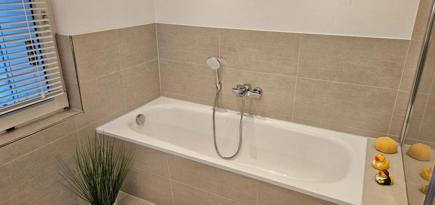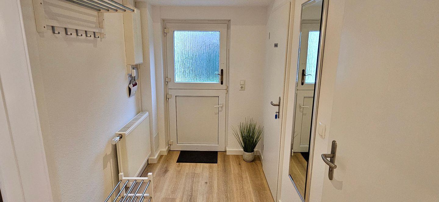 Im Erdgeschoss befinden sich ein gemütlicher Wohn- und Essbereich, ein Wintergarten, eine gut ausgestattete Küche, ein Badezimmer mit Badewanne und Dusche, ein separates WC sowie ein Schlafzimmer mit Doppelbett.