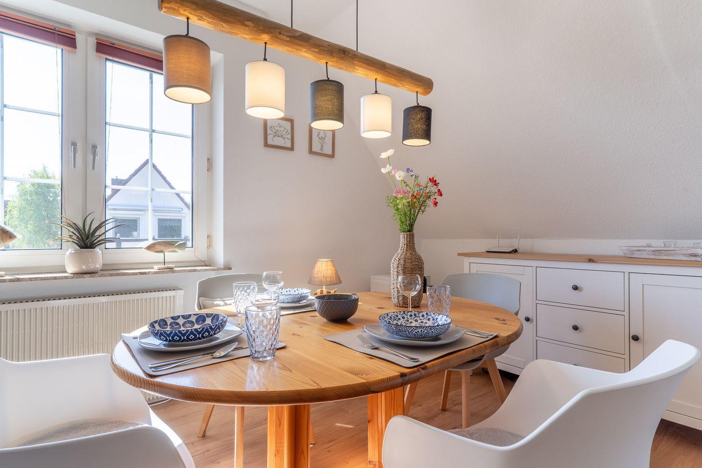 Die Ferienwohnung "Jolis Friesenstuv" ist eine schöne, hochwertig eingerichtete Wohnung im 1. Obergeschoss im Ortsteil Bad. Das Badzentrum mit der Kurpromenade, Einkaufsmöglichkeiten und Cafés/Restaurants erreichen Sie durch den Kurwald in etwa 15 Gehminuten.