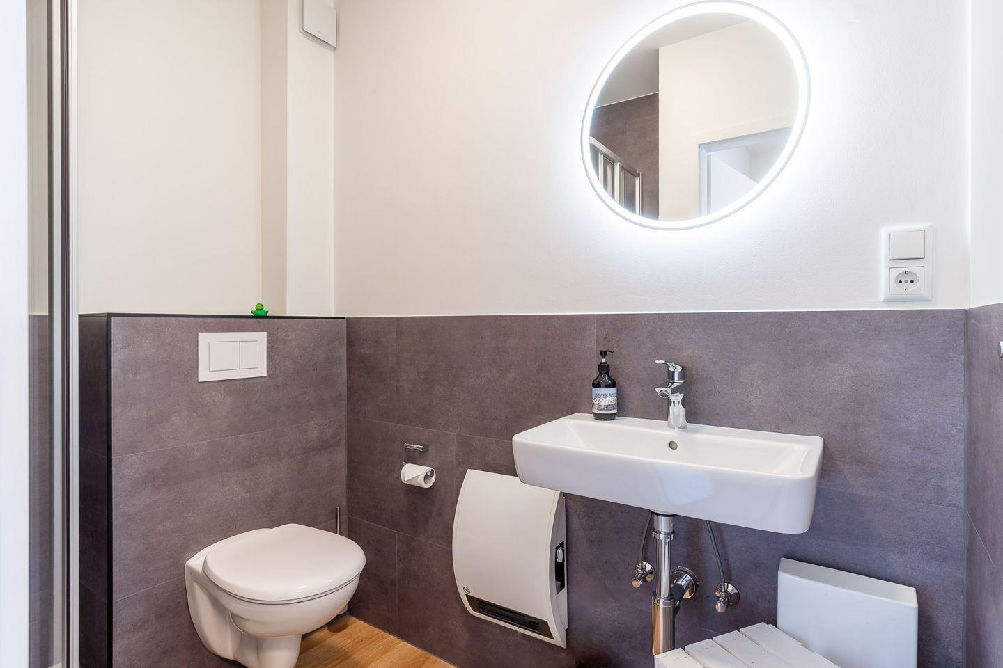 Ein Badezimmer mit Dusche rundet die Ausstattung ab. Hier finden Sie auch Annehmlichkeiten wie einen Haartrockner, einen Kosmetikspiegel sowie ein WC mit Waschbecken. Praktische Details, wie ein Staubsauger und Geschirrhandtücher, wurden ebenfalls berücksichtigt, um Ihren Aufenthalt so komfortabel wie möglich zu gestalten.