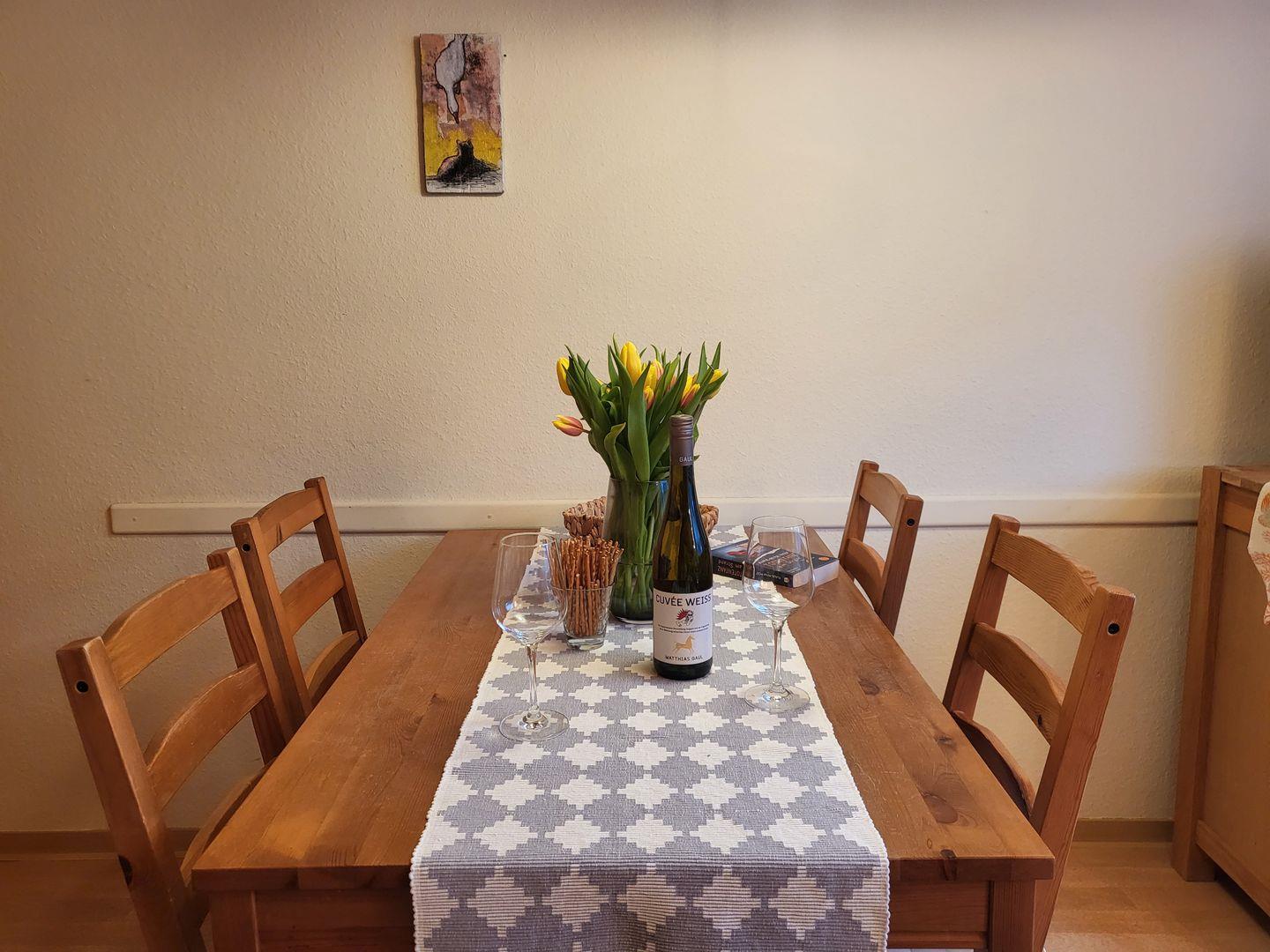 ruhig gelegenes, alleinstehendes Haus mit 3 Wohnungen, Whg. 1. OG links, WLAN, Nichtraucher, bis zu 4 Personen, privater Stellplatz auf Grundstück, separate Küche, Schlafzimmer mit Doppelbett, überdachter Fahrradunterstellplatz, gemeinschaftliche Gartennutzung, keine Haustiere, familienfreundlich