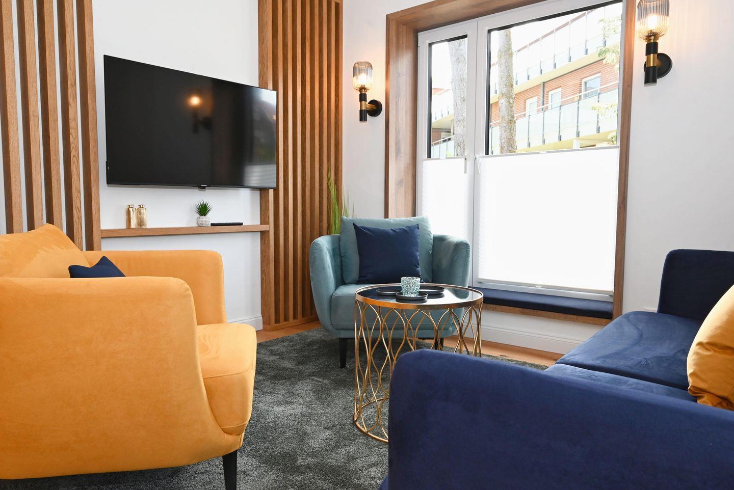 Der ca. 125 m² große Hausteil bietet alles, was Sie sich für eine erholsame Nordsee-Auszeit wünschen: im Erdgeschoss lädt der moderne Wohn- und Essbereich mit offener Küche und Design-Polstermöbeln zum entspannten Zusammensein ein.