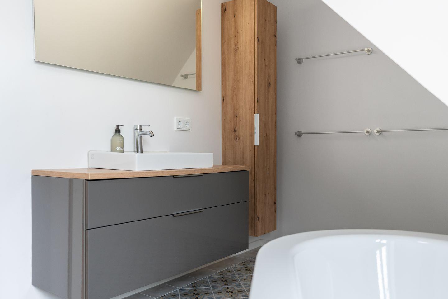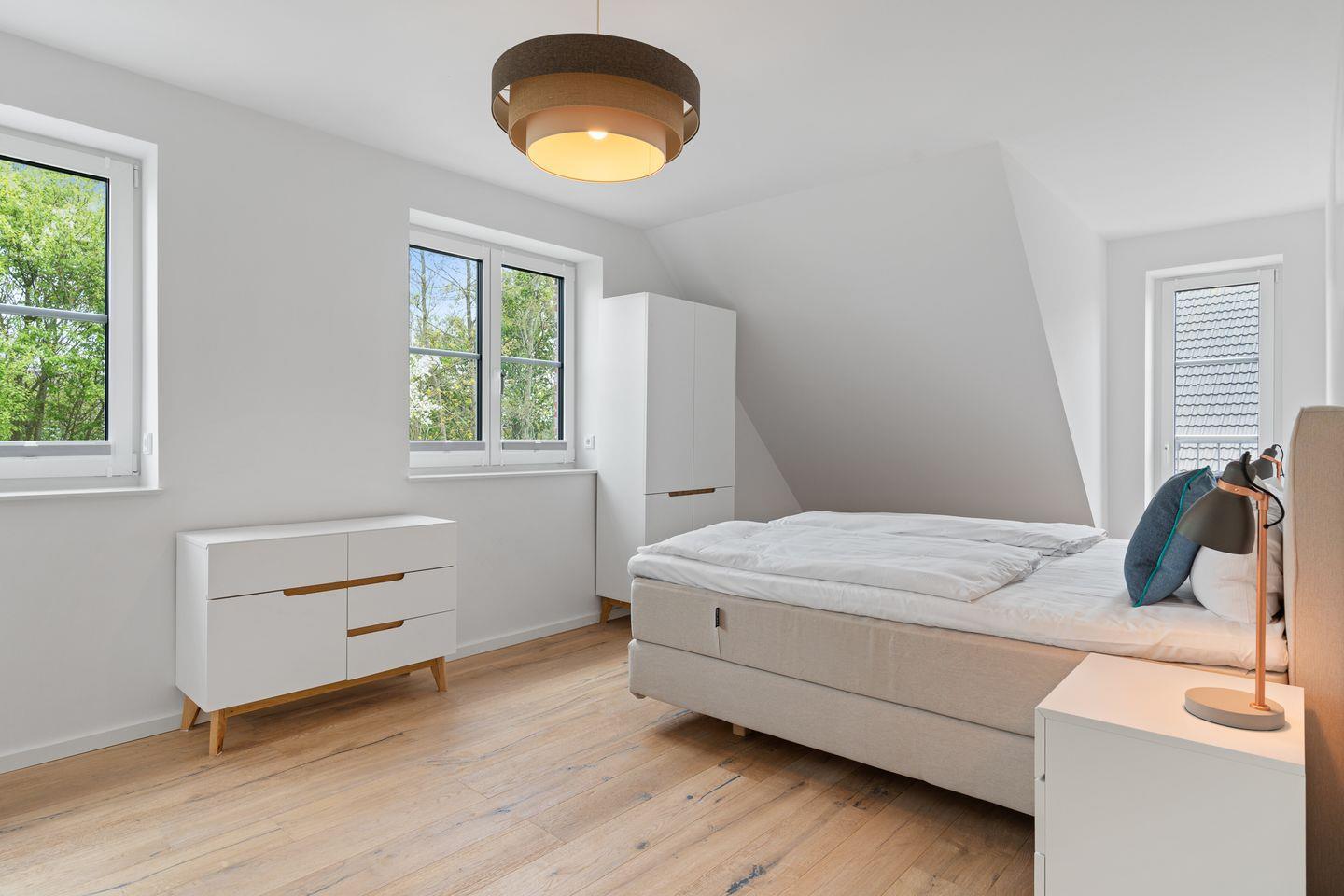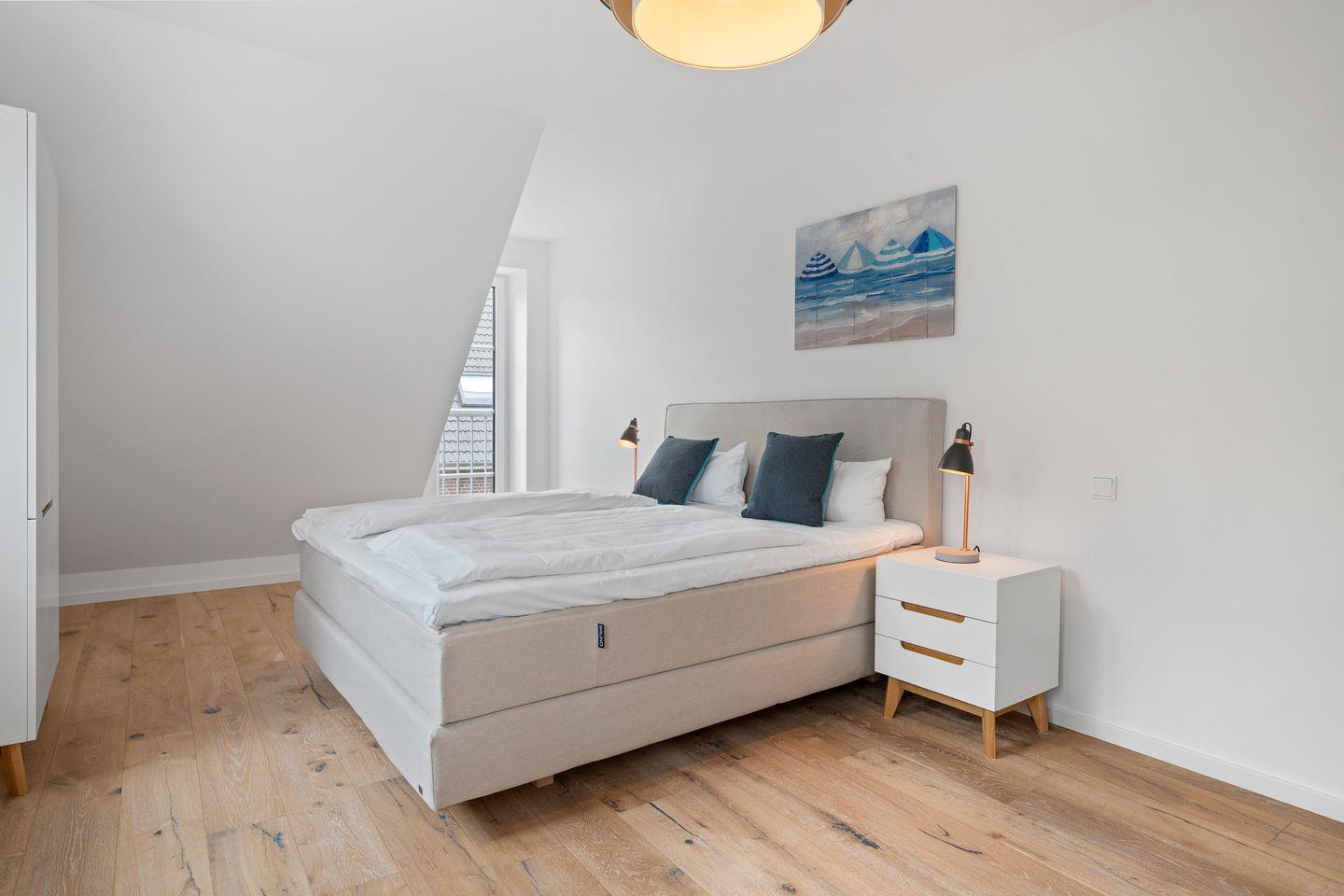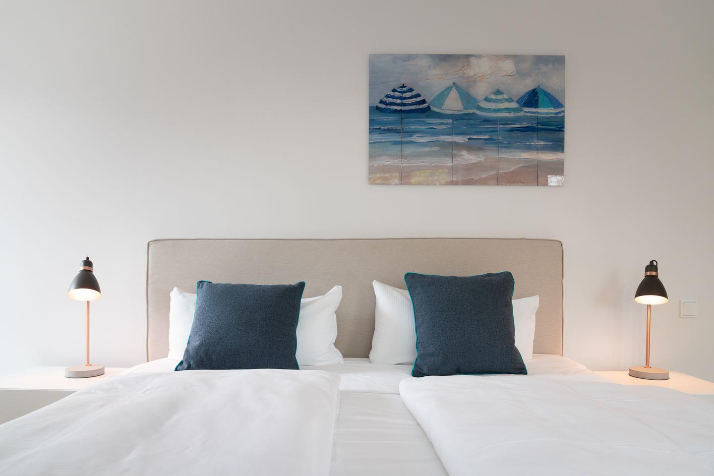 Die stilvoll Schlafzimmer mit Boxspingbetten bieten Komfort und genügend Stauraum für Ihr Gepäck. Ein Schlafzimmer verfügt über ein gemütliches Doppelbett (1,80 x 2,00) + TV, während im anderen Zimmer weitere Schlafmöglichkeiten (1,60 x 2,00) zur Verfügung stehen. Die Badezimmer mit Dusche und Badewanne bieten optimalen Komfort.