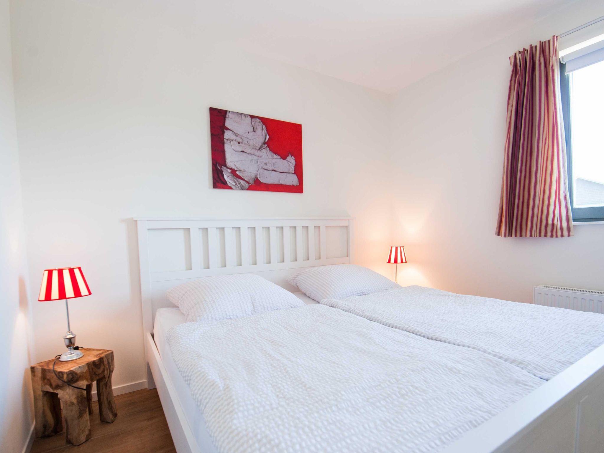 Ein Schlafzimmer mit einem 1,80 x 2 m Doppelbett und ein Zimmer mit Hochbett (Liegefläche 1,40 x 2 m) und einem Einzelbett. Kostenfreies W-LAN steht zur Verfügung.