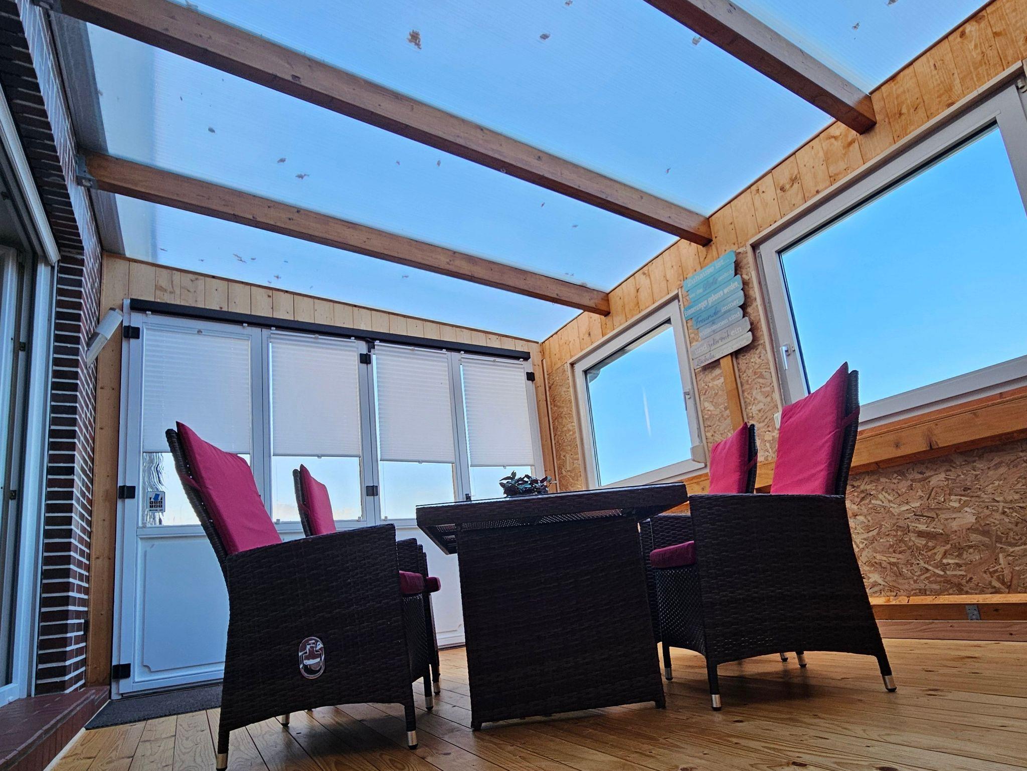 Unsere liebevoll eingerichtete Ferienwohnung bietet Ihnen eine abgeschlossene Wohneinheit mit hellem Wintergarten und großzügiger Dachterrasse.