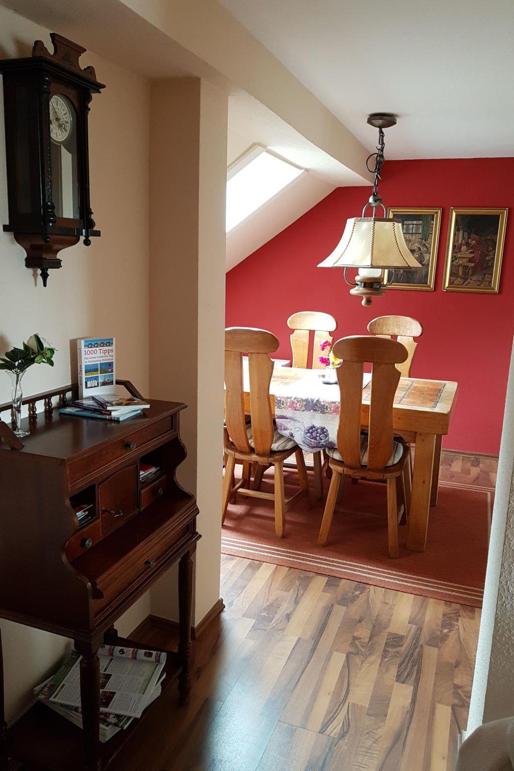 Flensburg, Schleswig, Kappeln or Denmark are about 20-30 minutes away by car. The Baltic and North Seas and their islands also offer beautiful trip destinations. Satrup also has a range of shops, an outdoor pool, and many cycling, hiking and walking paths. There are also good riding trails. There is a children’s playground 100 metres away. You can enjoy the charming, rural surroundings directly from the apartment.