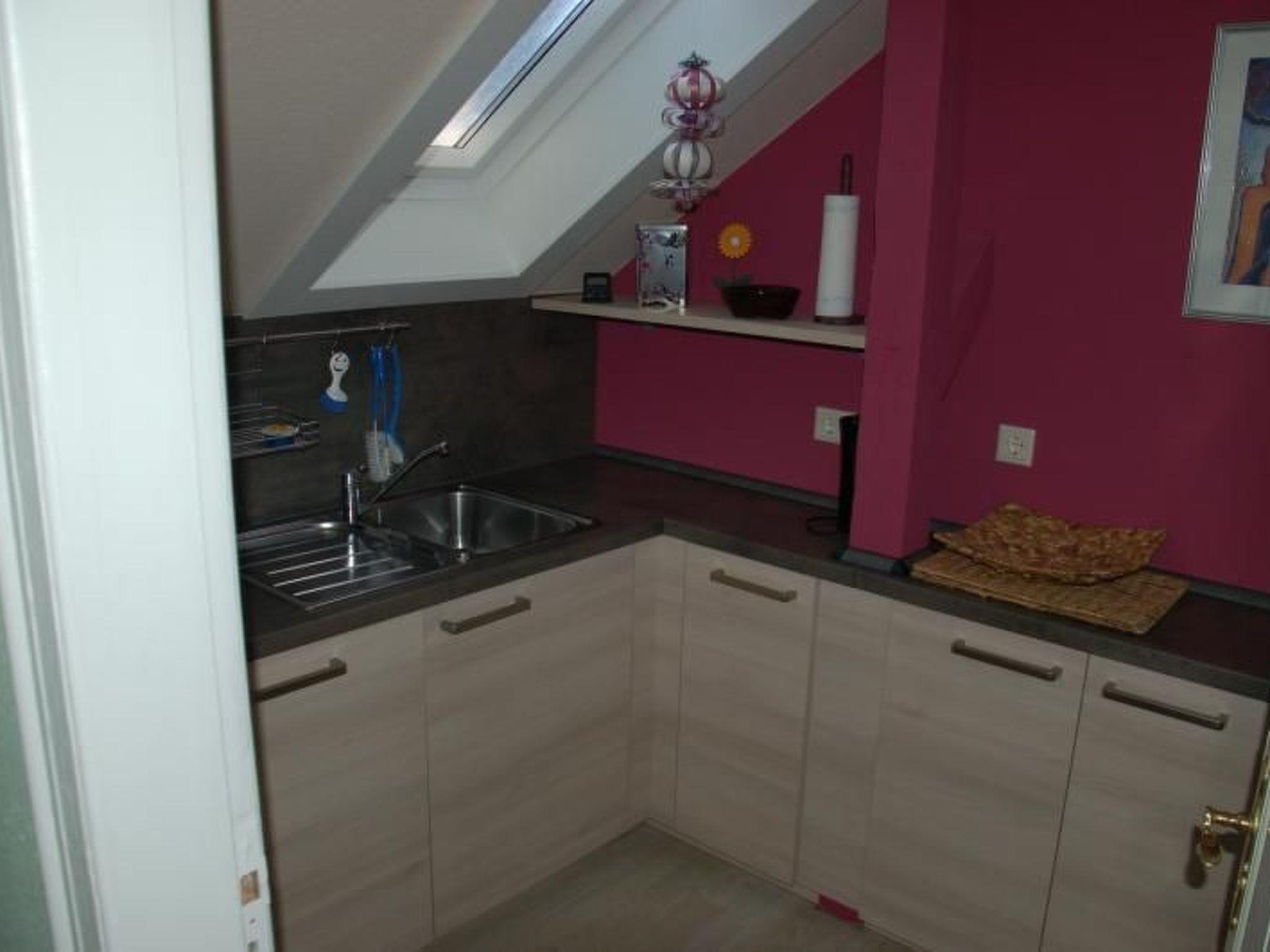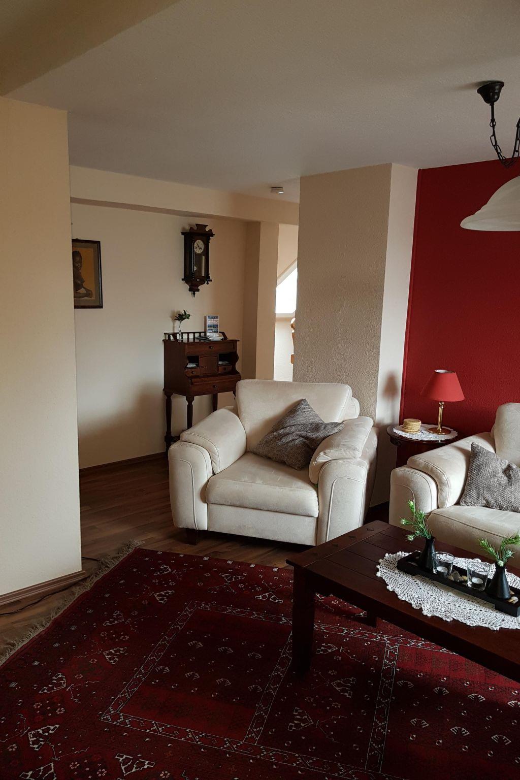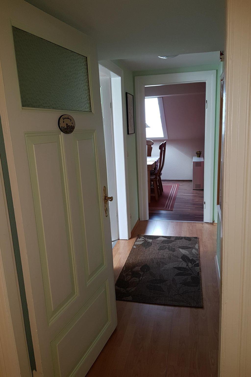 The beautiful and cosy non-smoking apartment was extensively renovated and newly furnished in 2011. It is on the first floor of a two-family house and is accessed up separate stairs. It provides a light living and dining room with a TV, DVD player and radio-CD player, a bedroom with a double bed (180 x 200cm), a balcony room with two other beds, a balcony with garden furniture, a parasol and cushions, a generous shower room, an elegant kitchen with a stove, oven, microwave and dishwasher, as well as an additional WC with a washing machine and dryer. The windows and balcony door are fitted with insect screens. Bed linen, towels and tea towels are provided. Pets are allowed on request.