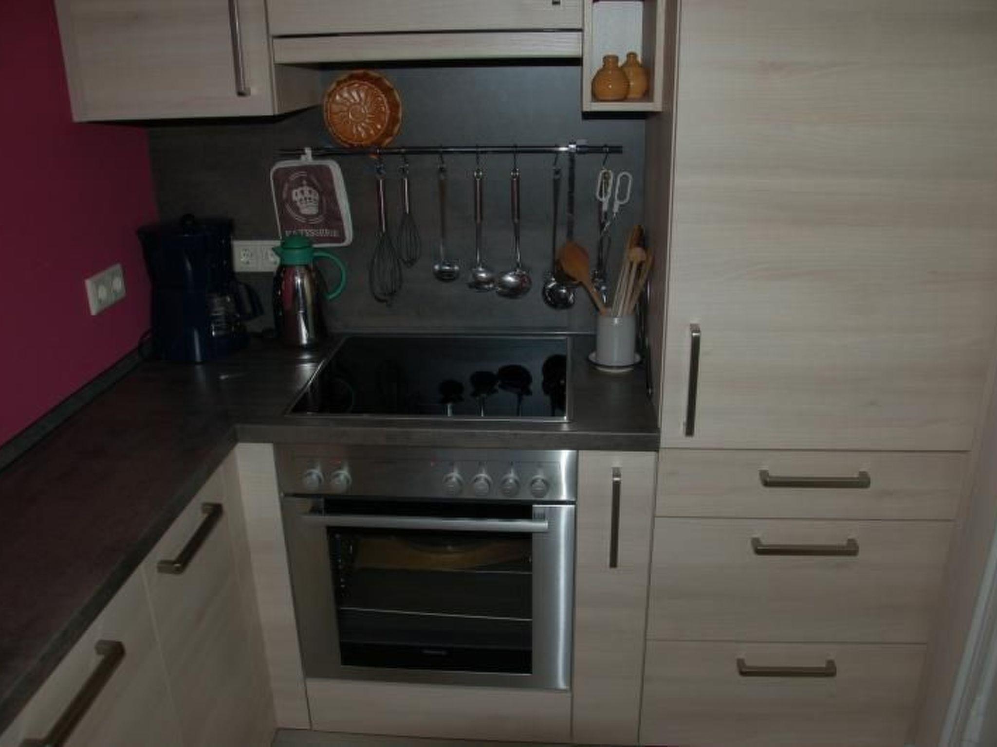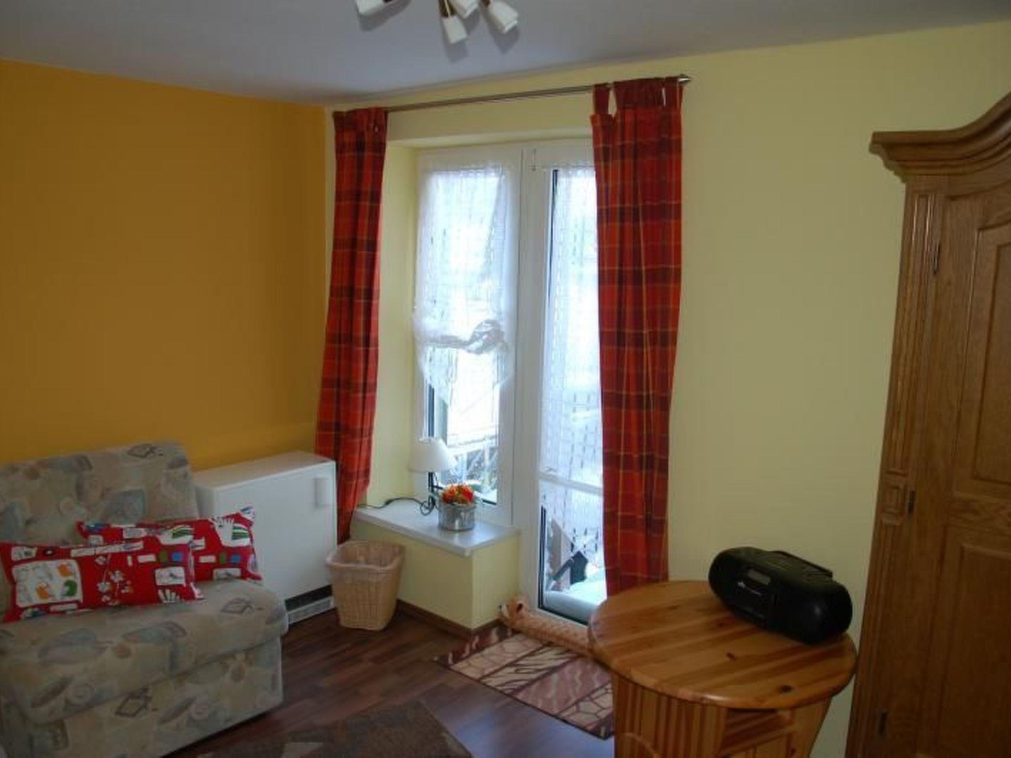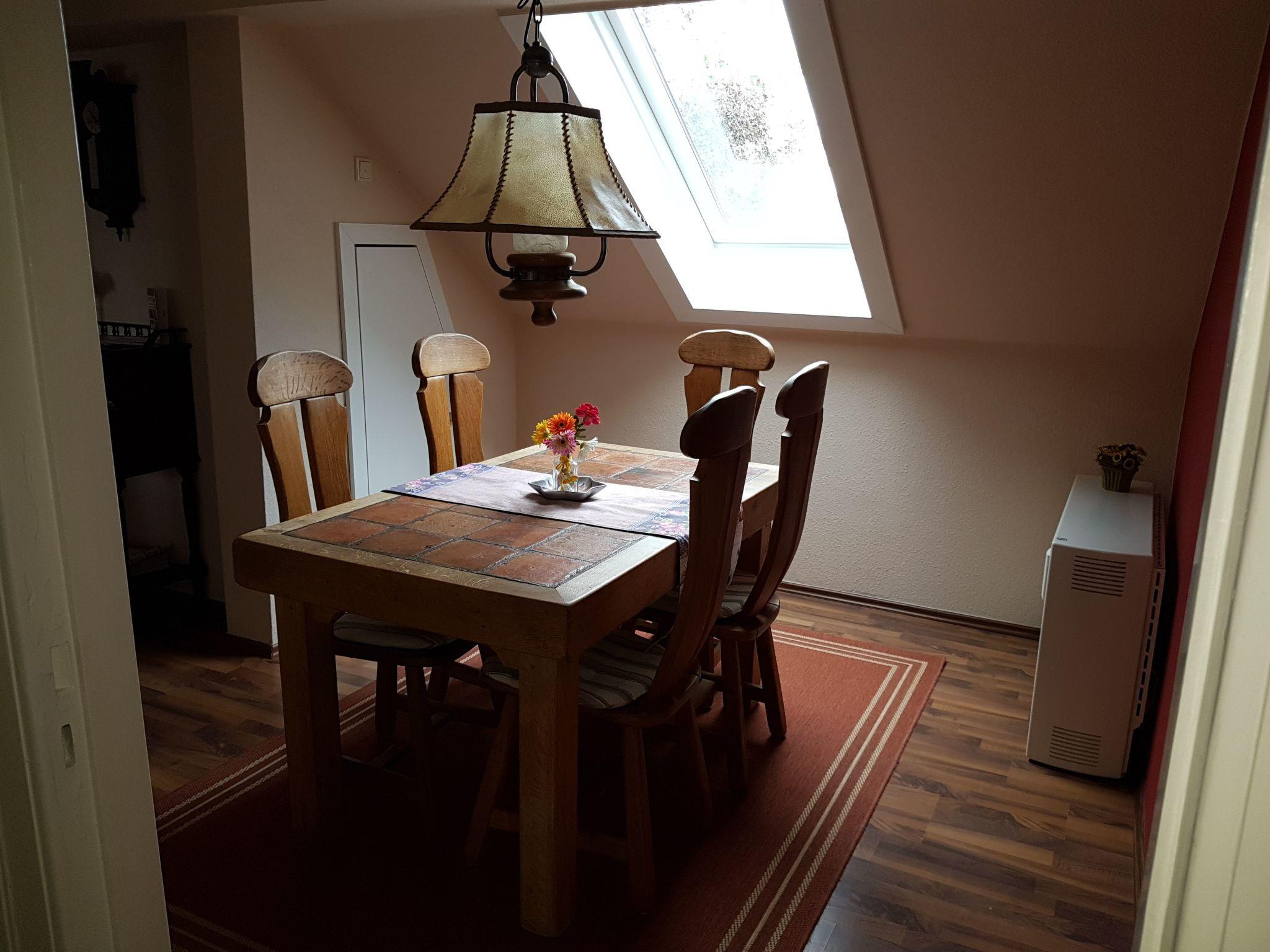 The beautiful and cosy non-smoking apartment was extensively renovated and newly furnished in 2011. It is on the first floor of a two-family house and is accessed up separate stairs. It provides a light living and dining room with a TV, DVD player and radio-CD player, a bedroom with a double bed (180 x 200cm), a balcony room with two other beds, a balcony with garden furniture, a parasol and cushions, a generous shower room, an elegant kitchen with a stove, oven, microwave and dishwasher, as well as an additional WC with a washing machine and dryer. The windows and balcony door are fitted with insect screens. Bed linen, towels and tea towels are provided. Pets are allowed on request.