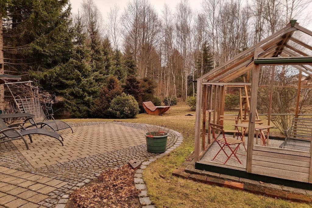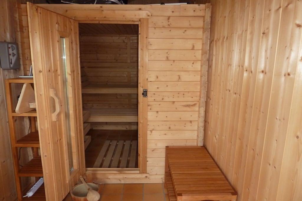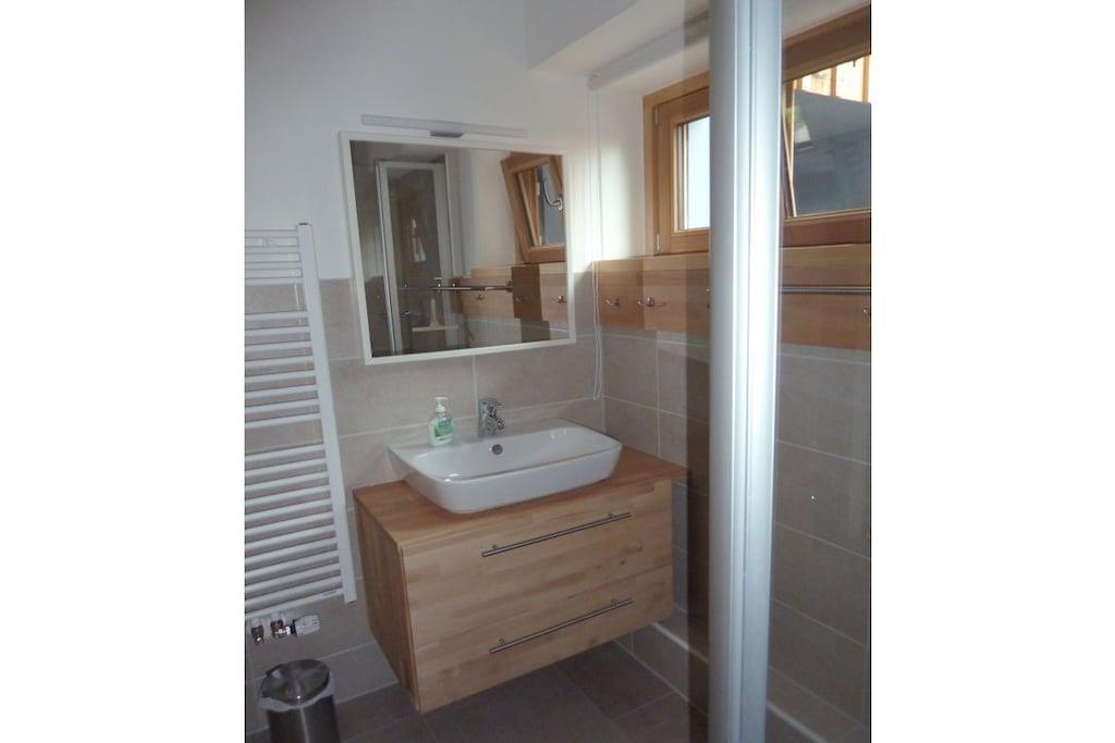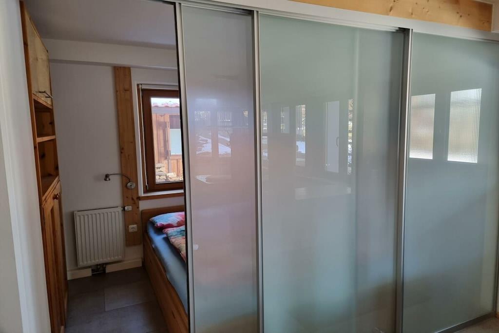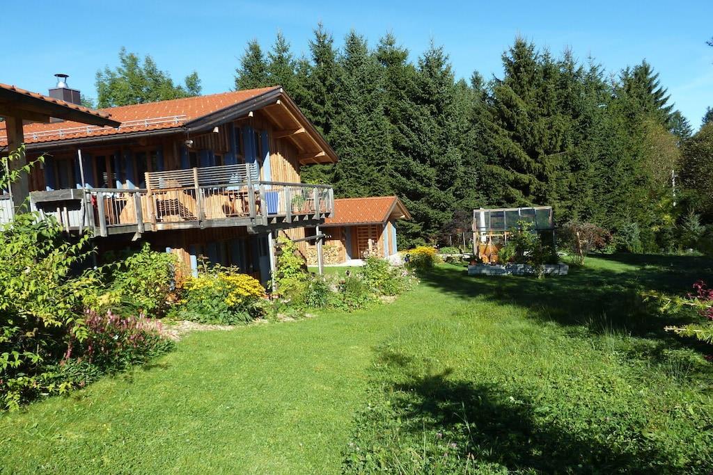 Moderne ferieleilighet (bygd i 2013), 40 kvadratmeter, stue med åpen planløsning, komfortabelt kjøkken (induksjonstopp, stekeovn, oppvaskmaskin, kjøleskap), separat soveplass med en 160 cm seng, bad med dusj. Reiseseng og barnestol tilgjengelig på forespørsel. Stor hage rett ved kanten av et naturreservat, privat terrasse. Badstuen ligger i hagehuset. Sofaen i stuen kan gjøres om til en seng med en 120 cm lamellbunn, noe som gir en tredje soveplass. Du finner oss også direkte på ferienwohnung-ammergauer-alpen.de