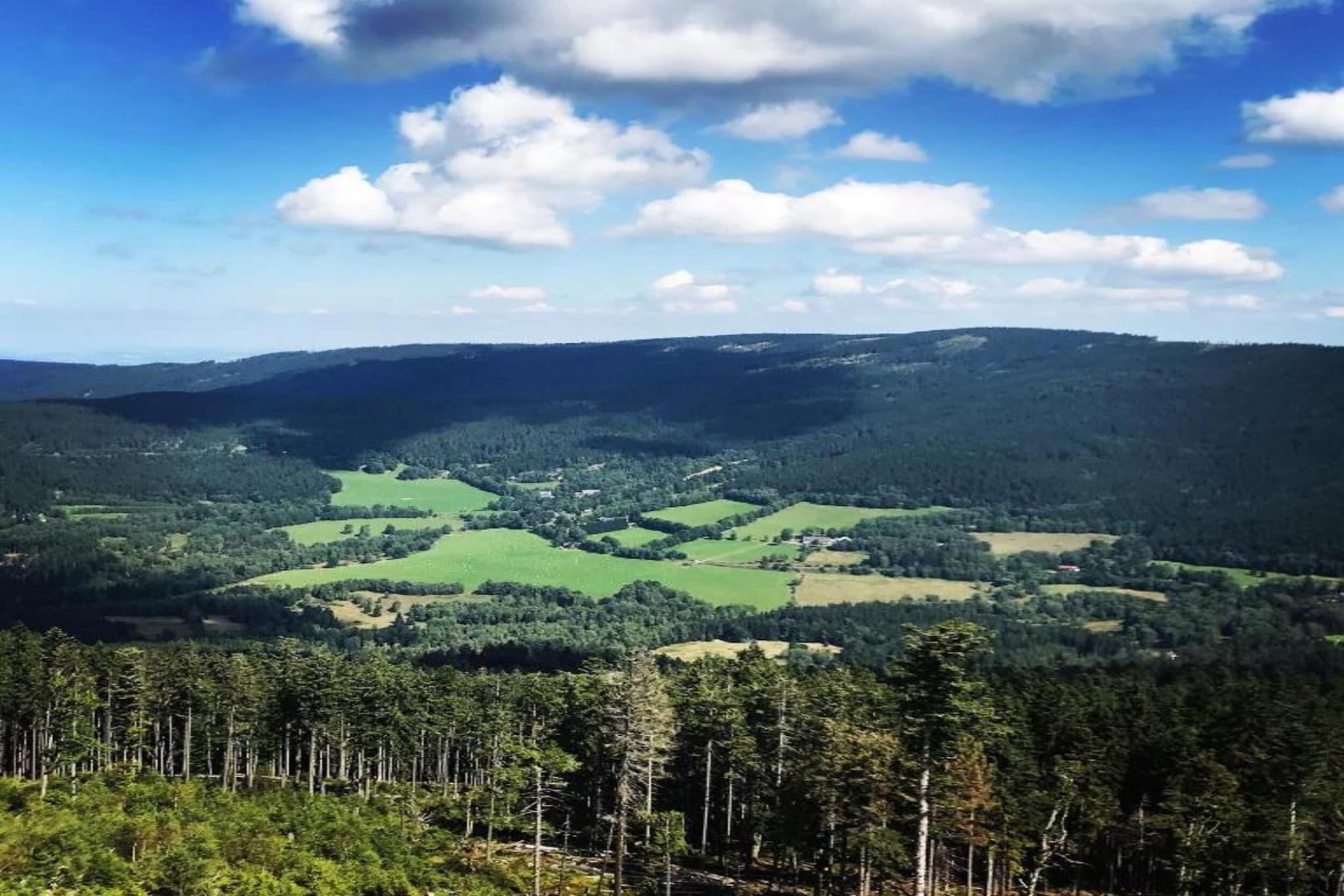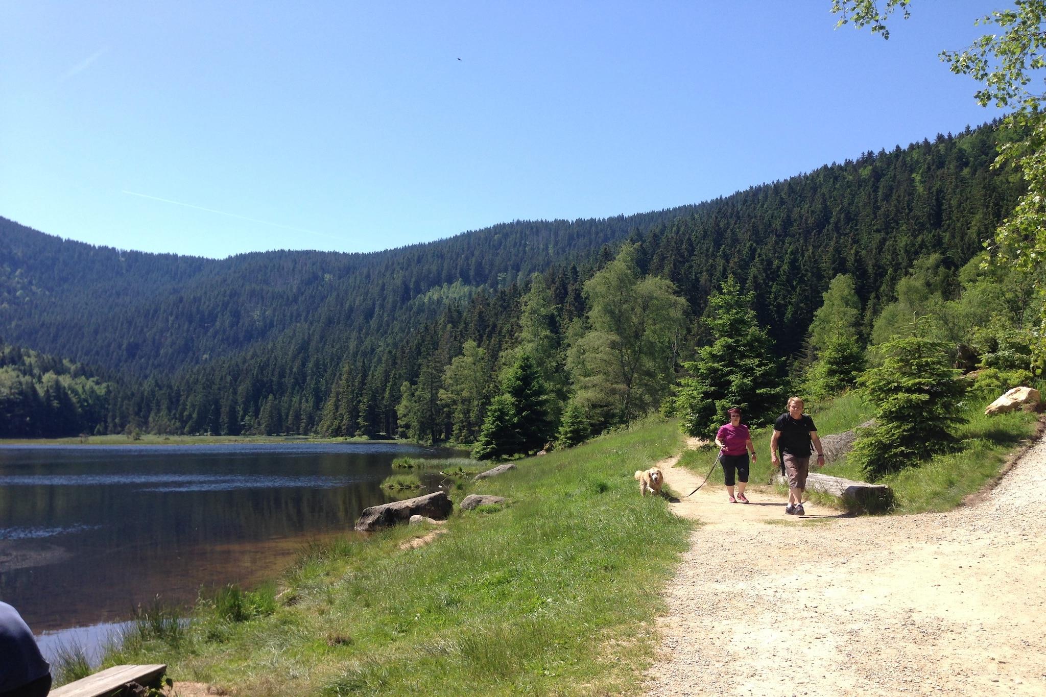 Denne innbydende villaen i Schöfweg-Langfurth tilbyr et komfortabelt opphold for familier eller grupper, med fire soverom fordelt på to etasjer. Første etasje inneholder tre soverom, bad med badekar og dusj og separat toalett. Ovenpå finner du et fullt utstyrt kjøkken, en koselig stue/spisestue med satellitt-TV, radio og en bar, pluss et ekstra soverom med servant. En privat terrasse, balkong og hage gir plass til å slappe av, mens sentralvarme sikrer komfort hele året. Fasilitetene inkluderer vaskemaskin, oppvaskmaskin, kaffemaskin og sikker sykkeloppbevaring. Hagen er innredet for uteservering, og privat parkering gir ekstra bekvemmelighet. Et overvåkingskamera gir ekstra sikkerhet, og oppsettet har plass til både voksne og barn med køyesenger og barneseng. I nærheten kan du besøke utkikkstårnet Brotjacklriegel for panoramautsikt over den bayerske skogen, eller gå på den naturskjønne Sonnenwald Erlebnispfad med interaktive naturstasjoner. Om vinteren kan du gå på ski bare 100 meter fra villaen. For bespisning, prøv Gasthof zum Sonnenwald for bayerske klassikere eller Panorama-Landgasthof Ranzinger for solid regional mat.