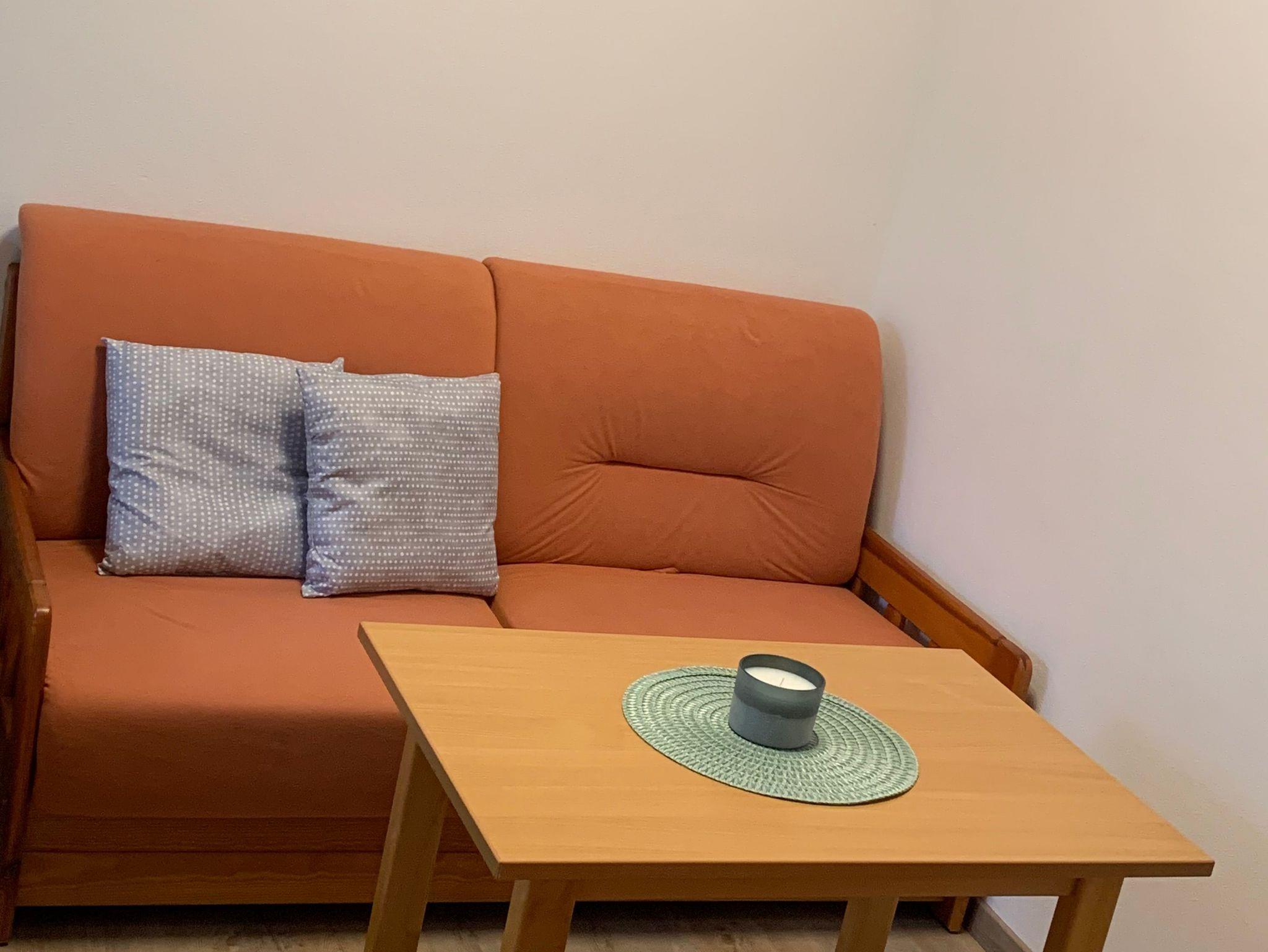 Kleine Ferienwohnung mit Wohn-Schlafraum, Essecke ,Küchenzeile,Bad und Terrasse im EG.