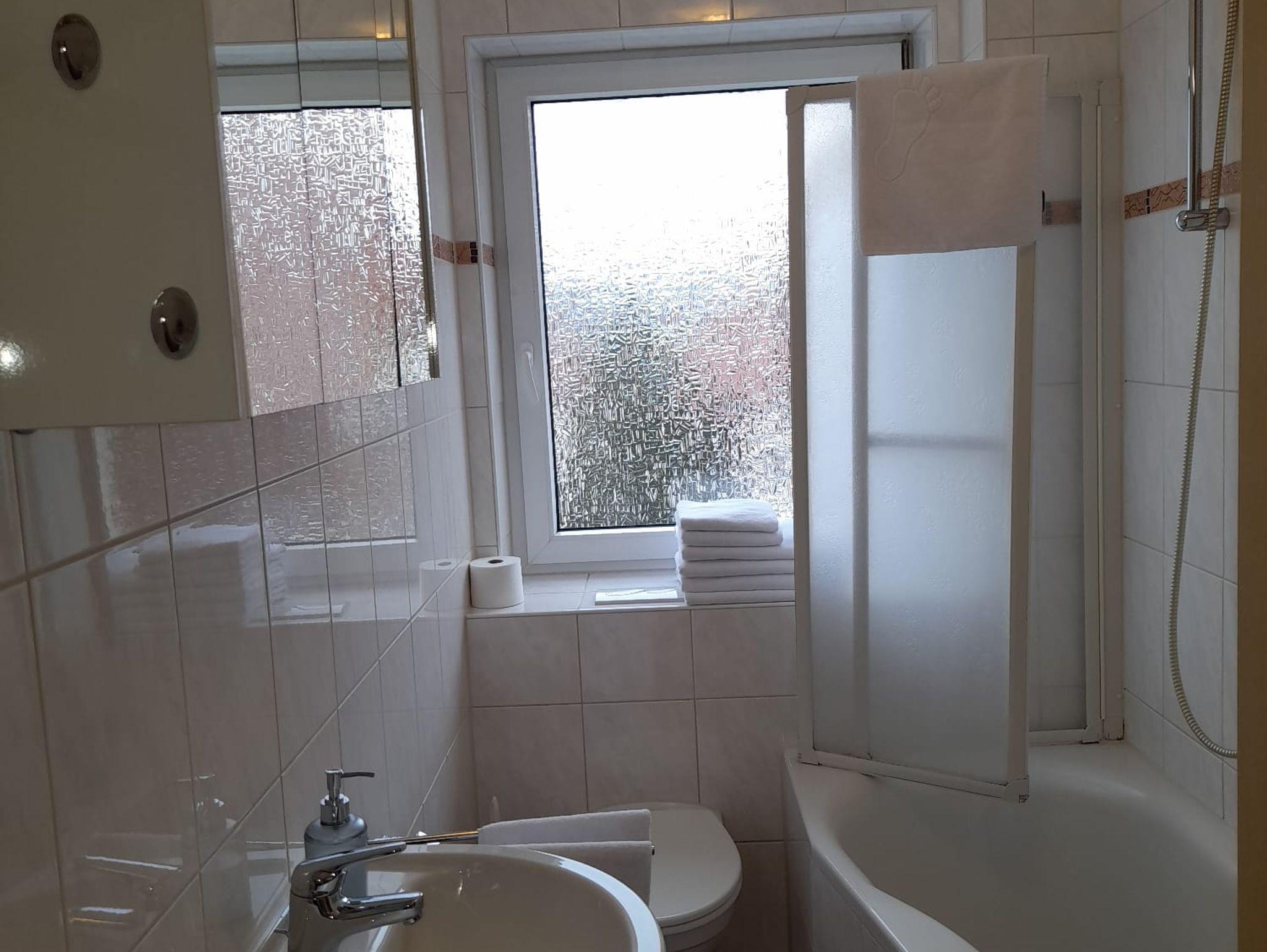 ANKOMMEN & WOHLFÜHLEN! In unserer ca. 70 qm großen Ferienwohnung bleiben keine Wünsche unerfüllt! Die helle und freundliche Ferienwohnung ist modern und attraktiv eingerichtet. Es können bis zu sechs Gäste anreisen. Ein erholsamer Schlaf ist durch das gemütliche 5* Boxspringbett in 2 separaten Schlafzimmern sicher! Zusätzlich befindet sich im Wohnzimmer eine große, ausziehbare Schlafcouch. Bei Bedarf ist auch ein Babybett/Babyhochstuhl vorhanden. Im geräumigen Schrank lassen sich sperrige Gepäckstücke und Klamotten verstauen. Außerdem befindet sich eine sehr hochwertige, vollausgestattete Küche in der Wohnung (Backofen, Herdplatten, Kaffeemaschine, Wasserkocher, Kühlschrank mit Gefrierfach, Küchenutensilien etc.) sowie ein Essbereich. Unseren Gästen steht ein Satelliten-TV 50“- LED und kostenfreies WLAN zu Verfügung. Im eigenen Badezimmer finden unsere Gäste ein WC, ein Waschbecken, einen Föhn und eine Badewanne mit Duschfunktion. Vor allem im Sommer können Sie entspannte Abende auf dem eigenen, großen Balkon ausklingen lassen. Hochwertige Bettwäsche und Handtücher sind ebenfalls in der Ferienwohnung enthalten.