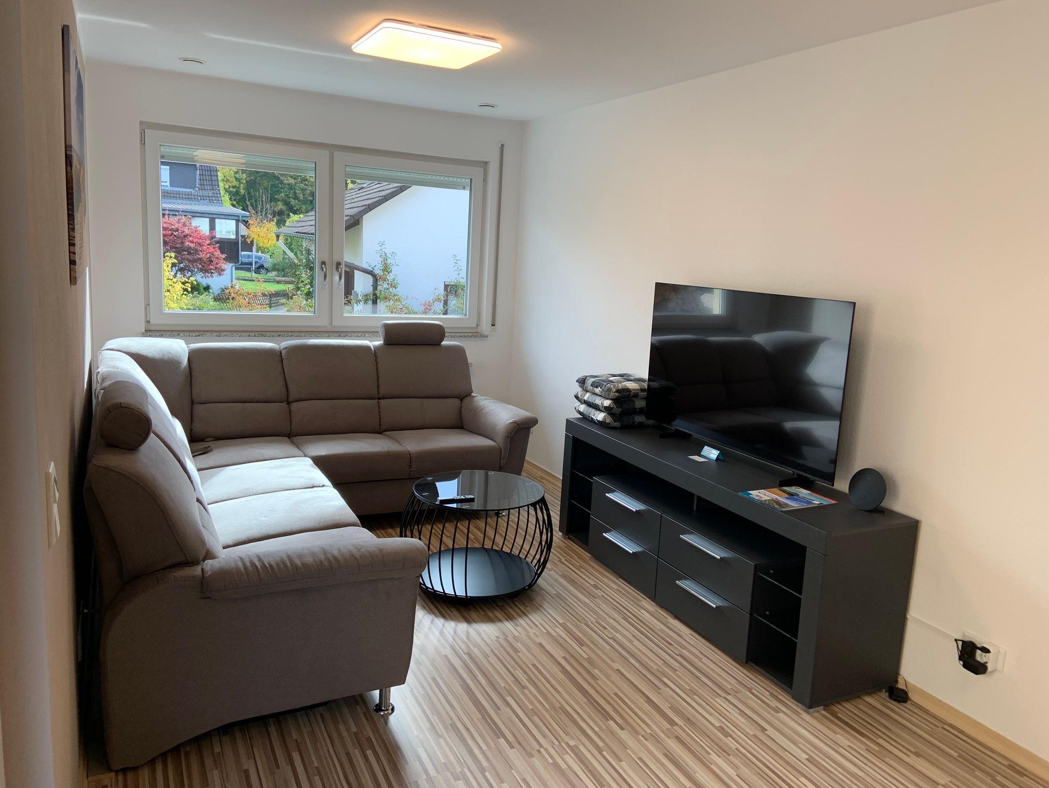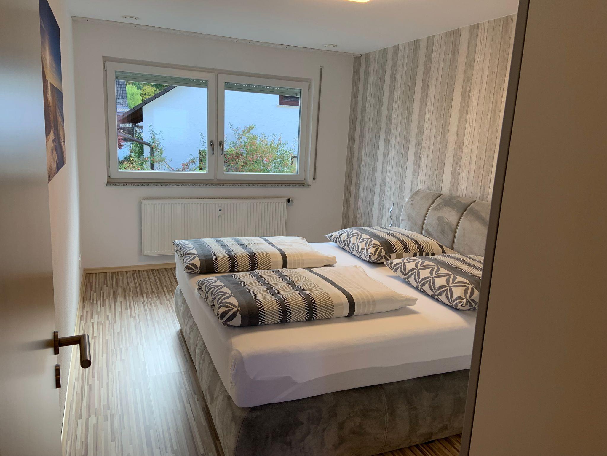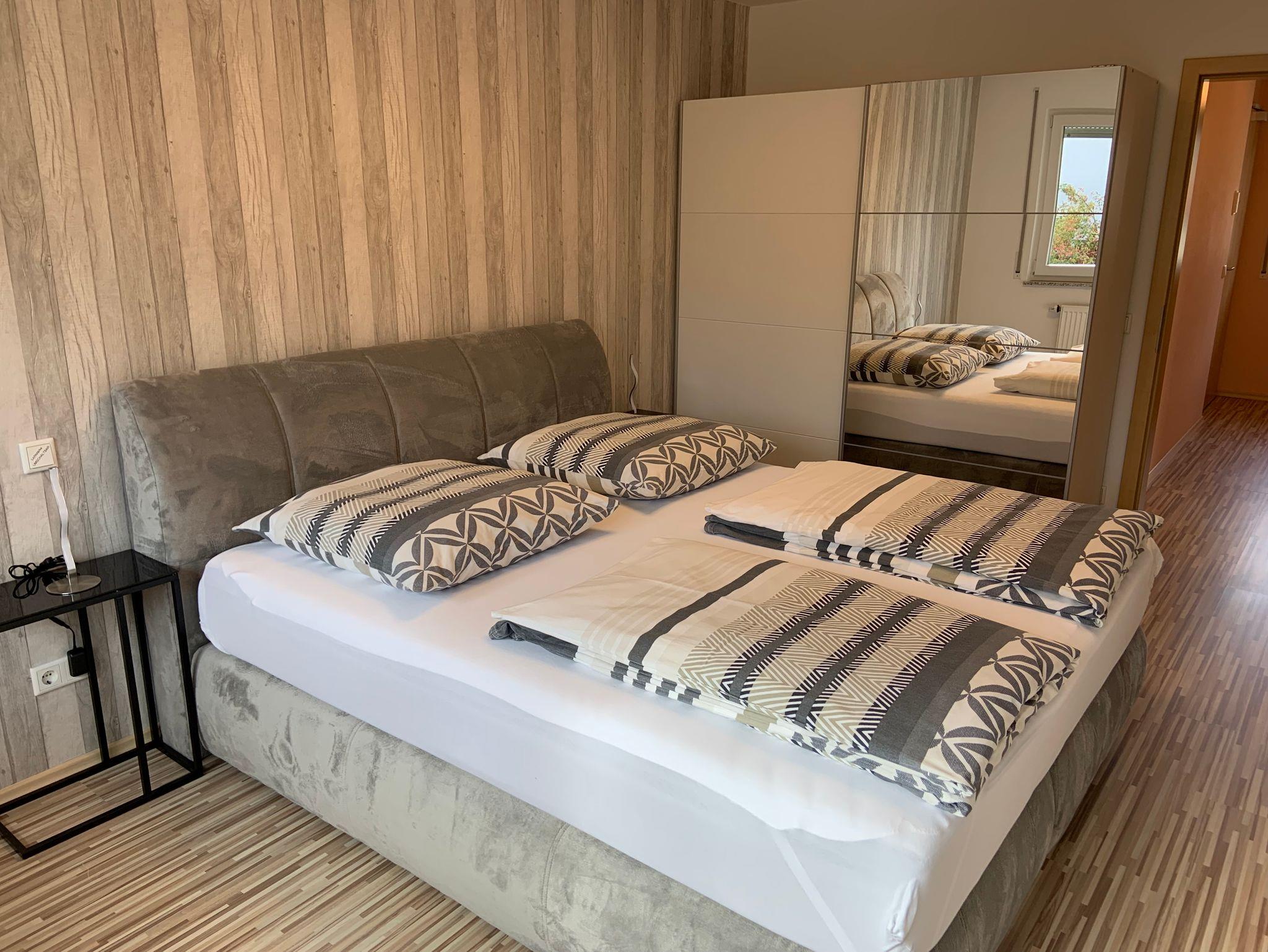 ANKOMMEN & WOHLFÜHLEN! In unserer ca. 55 qm großen Ferienwohnung bleiben keine Wünsche unerfüllt! Die helle und freundliche Ferienwohnung ist modern und attraktiv eingerichtet. Es können bis zu drei Gäste, plus ein Kleinkind bis zu zwei Jahren, anreisen. Ein erholsamer Schlaf ist durch das gemütliche 5* Boxspringbett sowie durch ein bequemes Schlafsofa sicher! Bei Bedarf ist auch ein Babybett vorhanden. Im geräumigen Schrank lassen sich sperrige Gepäckstücke und Klamotten verstauen. Außerdem befindet sich eine vollausgestattete separate Küche in der Wohnung (Mikrowelle, Backofen, Herdplatten, Kaffeemaschine, Wasserkocher, Kühlschrank mit Gefrierfach, Küchenutensilien etc.) sowie ein Essbereich. Unseren Gästen steht ein Satelliten-TV 55“- LED und kostenfreies WLAN zu Verfügung. Im eigenen Badezimmer finden unsere Gäste ein WC, ein Waschbecken, einen Föhn und eine Dusche. Vor allem im Sommer können Sie entspannte Abende auf dem eigenen Balkon ausklingen lassen. Hochwertige Bettwäsche und Handtücher sind ebenfalls in der Ferienwohnung enthalten.