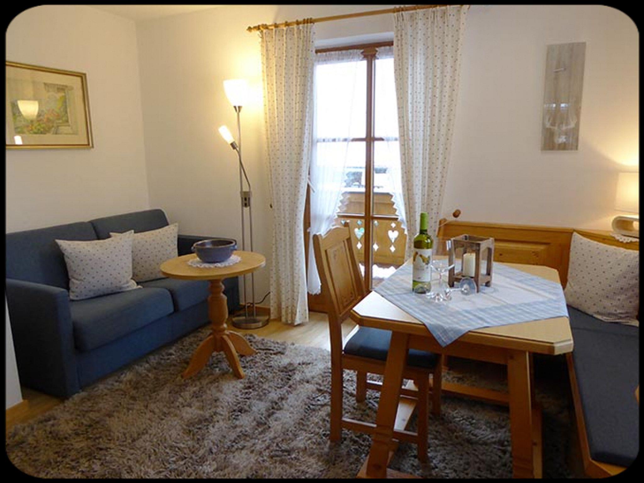 Unsere liebevoll eingerichtete Ferienwohnung „Enzian“ befindet sich in der 1. Etage und verfügt über 2 Balkone mit traumhaftem Bergblick. Der gemütliche Wohnbereich mit Kabel-TV hat u.a. eine gemütliche Essecke und eine neue Küchenzeile mit Geschirrspüler, Kühlschrank mit Gefrierfach usw., 1 separates Schlafzimmer mit Bandscheibenmatratzen, neues Bad mit ebenerdiger Dusche, Waschbecken und WC.Ausgestattet ist die Wohnung mit Bettwäsche, Handtücher, Geschirr, Kaffeemaschine, Mikrowelle, Wasser- und Eierkocher, Toaster, Bio-Teestation, Fön, Seifen- und Duschgelspender, Toilettenpapier, Kosmetiktücher.Autostellplatz.