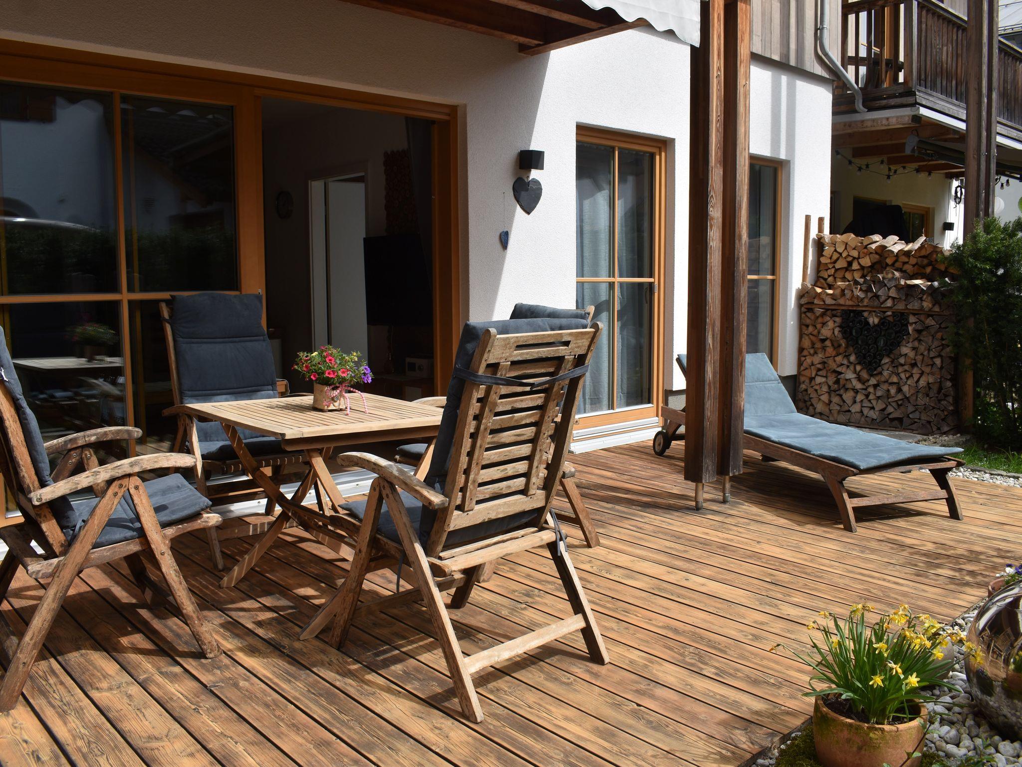 Die Wohnung beinhaltet einen großzügigen, offen gestalteten Wohn- Ess- und Kochbereich, 2 Schlafzimmer (1x mit Doppelbett und 1x mit 2 Einzelbetten) und 2 Bäder (einmal mit Dusche und Badewanne und einmal mit Dusche). Moderne TV Geräte finden Sie im Wohnzimmer und in einem Schlafzimmer. Die hochwertige Einrichtung der Wohnung lädt ein zum Entspannen. Alle Räume verfügen über Fußbodenheizung, die individuell regelbar ist; in den Wohnräumen können Sie den Komfort von Echtholzböden genießen. Sowohl von dem Wohnbereich als auch von beiden Schlafzimmern aus kann man auf die Terrasse gehen. Auf der 25m2 großen, möblierten, sonnigen und windgeschützten Holz Terrasse ist auch eine Grillmöglichkeit vorhanden. In dem kleinen blühenden Garten mit einem Zierbrunnen können Sie den Blick auf den Jenner genießen und die Seele baumeln lassen. Kinder sind bei uns herzlich willkommen!