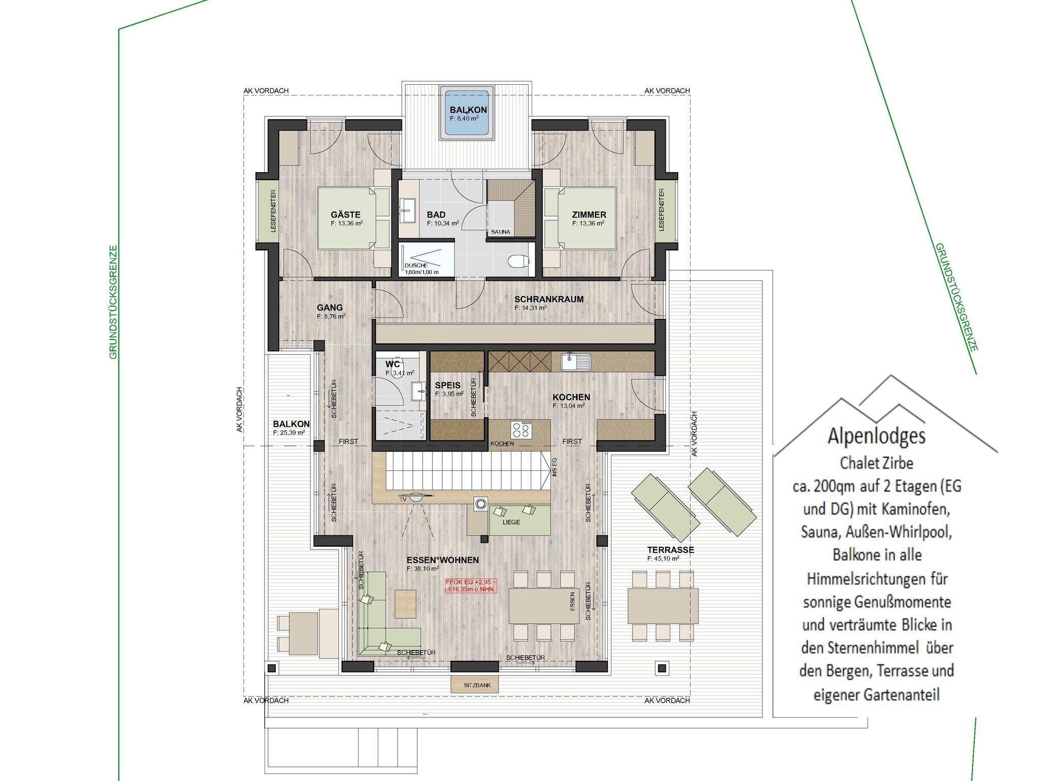 Alpenlodges Chalet Zirbe, 200 qm, 3 Schlafzimmer, 3 Bäder, Sauna, Terrasse und Balkon