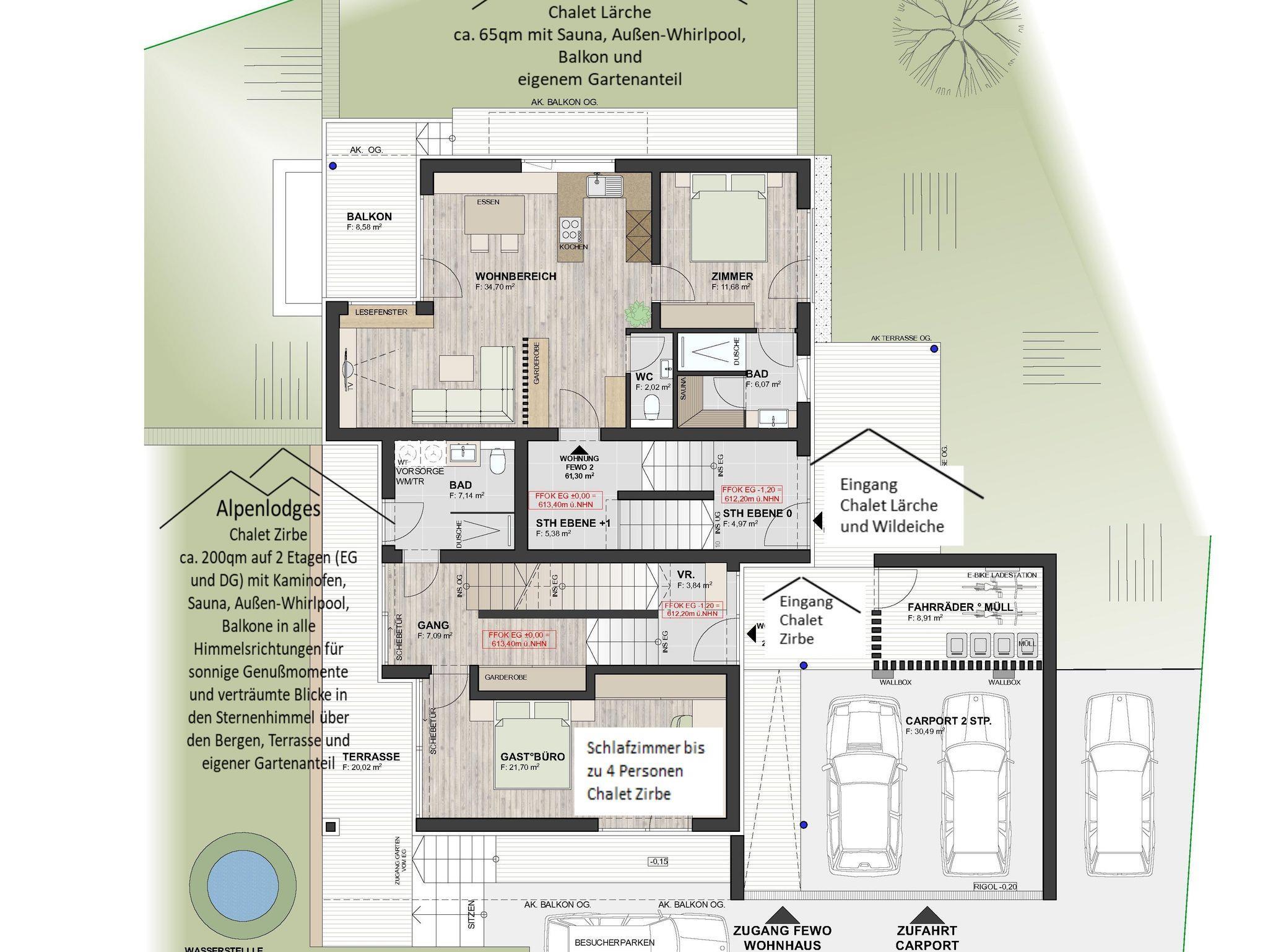 In unseren Alpenlodge Chalets genießen Sie alpine Behaglichkeit und höchsten Komfort. In absolut ruhiger Lage eröffnen wir im Herbst 2023 unsere Alpenlodge Chalets Zirbe, Lärche und Wildeiche. Das Chalet Zirbe bietet Ihnen auf zwei Etagen drei Schlafzimmer, drei Bäder, mehrere Terrassen und Balkone, Garten und einen großzügigen Wohn-Essbereich mit Kaminofen.Saune, Jacuzzi, Weinkühlschrank, Tellerwärmer und vieles andere sorgen für das gewisse Etwas in den Bergen.Die Chalets Lärche und Wildeiche empfangen Sie ebenfalls mit eigener Sauna und Jacuzzi, Weinkühlschrank, separatem Schlafzimmer, Wohn-Essbereich mit Kuschel-Lesefenster, Schlafsofa und Terrasse bzw. Balkon und Garten. In unseren außergewöhnlichen Chalets genießen Sie Komfort und Behaglichkeit. Den malerischen Königssee erreichen Sie zu Fuß, die Langlaufloipe liegt nur einen Katzensprung entfernt. Mitten im Herzen der Berchtesgadener Alpen:Wandern und Radfahren, Golfen, Skifahren und Winterwandern im Berchtesgadener Land. Ihre E-Bikes können Sie bei uns laden, Wallboxen stehen ebenfalls zur Verfügung (gegen Gebühr).Verbringen Sie unvergessliche Momente in den Alpenlodges mit Jacuzzi und Sauna - erleben Sie einmalige Momente und nehmen wertvolle Erinnerungen in Ihrem Herzen mit nach Hause. Die Lodges werden in nachhaltiger Bauweise errichtet. Holz, Stein und Filz schaffen den einzigartigen Alpenchic für Ihre wertvollste Zeit des Jahres.