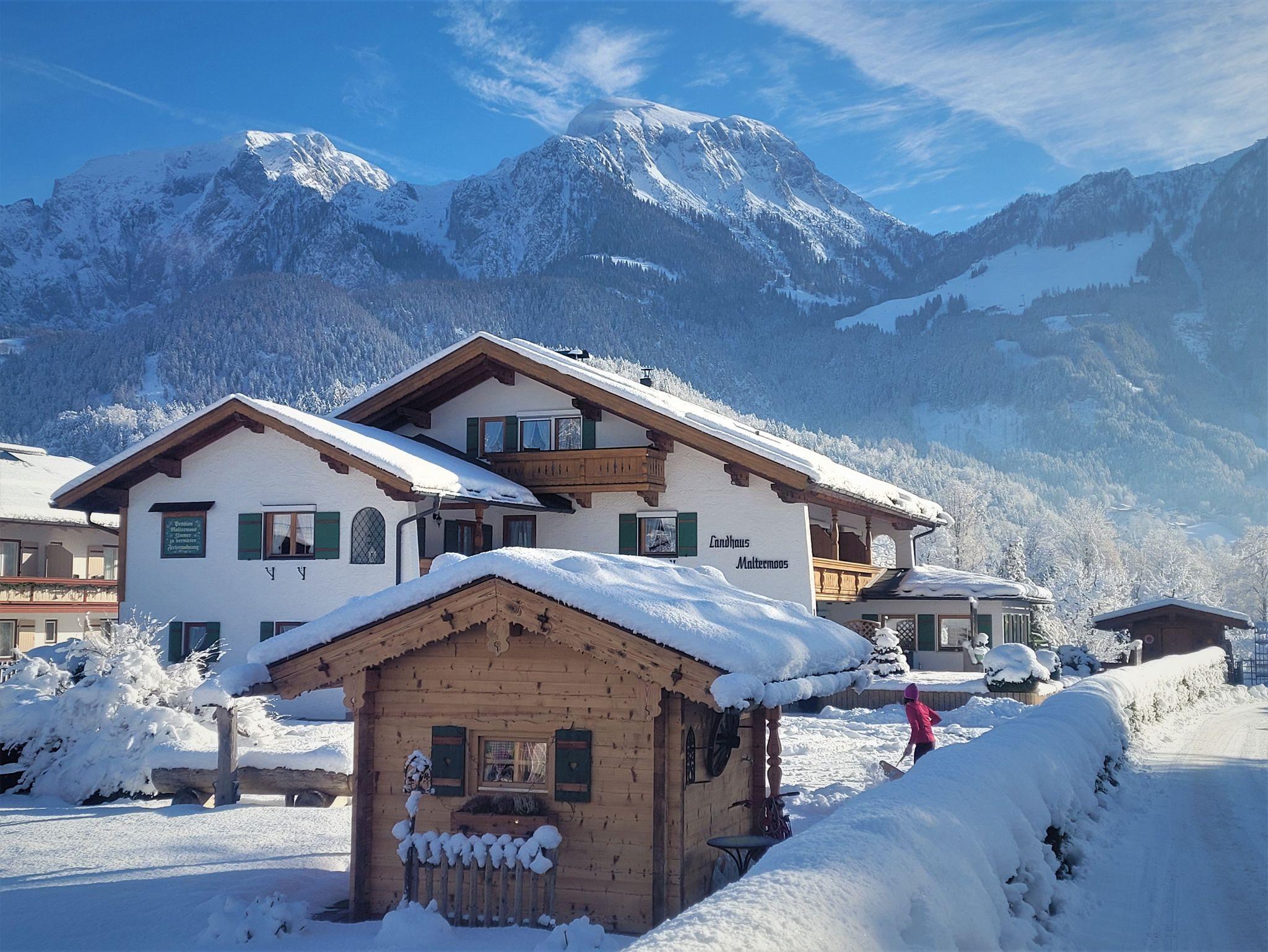 Herzlich Willkommen bei Familie Maier im Landhaus Maltermoos. Unser Haus liegt ruhig, sonnig und doch zentral. Die Zimmer sind mit viel Holz im bayerischen Stil eingerichtet und bieten Platz für 2 Personen. Genießen Sie die ruhige Lage und ein herriches Bergpanorama auf dem Balkon oder unserer Terrasse. Gerne können Sie sich an der Kaffeemaschine oder am Getränkekühlschrank selbst bedienen. Zum Entspannen stehen Ihnen eine Sauna mit Ruheraum, ein Infrarotsessel und Fitnessgeräte zur Verfügung. In wenigen Gehminuten erreichen Sie die Tourist-Information (Haus des Gastes), das Gradierwerk mit Kneippanlage und viele Gaststätten. Nur 1 Minute ist es bis zur Bushaltestelle. Nach einer kurzen Gehzeit von ca. 20 Minuten erreichen Sie den Königssee sowie die Jennerbahn. Im Winter ist auch die Langlaufloipe zu Fuß erreichbar. Gerne stehen wir Ihnen natürlich persönlich mit Ratschlägen für Ihre Aktivitäten zur Verfügung.