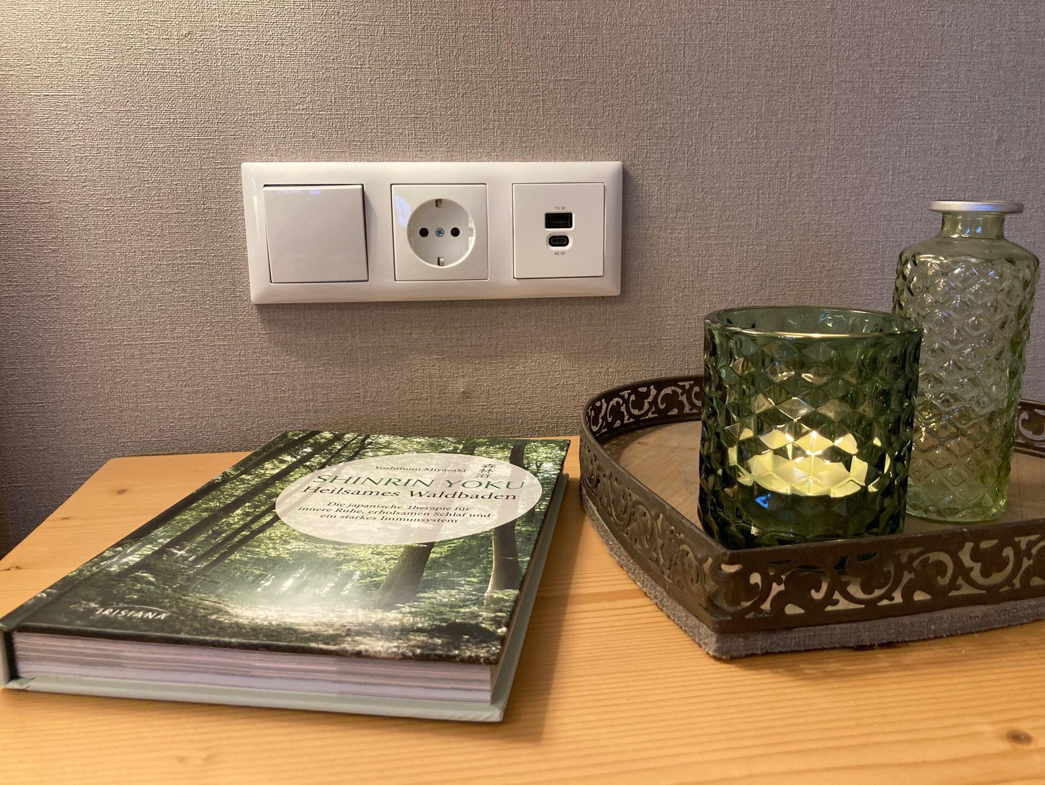 Sie können Ihre Kommunikationsgeräte direkt am Bett laden. Steckdosen und Leselicht direkt am Bett. Kostenfreies WLAN.