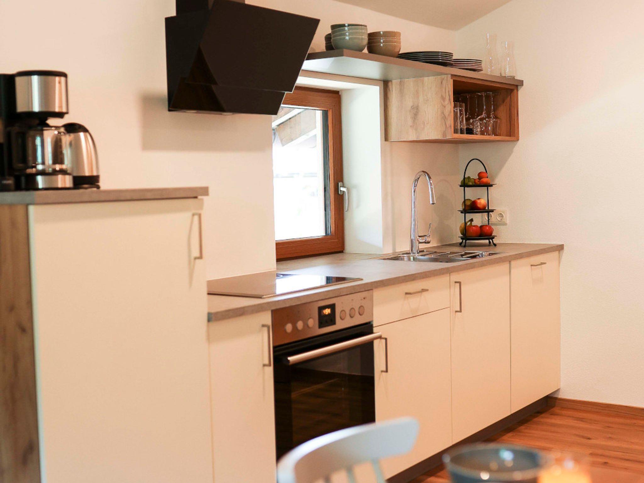 Die Ferienwohnung Grünstein mit ca. 72 qm liegt im ersten Stock. Sie bietet Platz für bis zu vier Personen. Zwei Schlafzimmer mit Dusche / WC / TV, gemütlichem Wohn- Essbereich mit TV, offener Küche und Balkon.