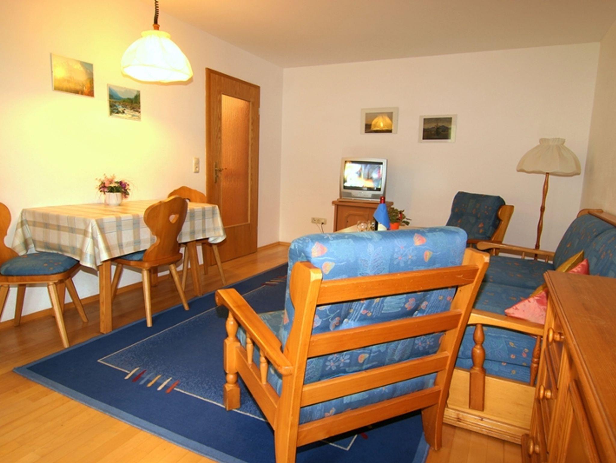 Diese Ferienwohnung hat ca. 65 m² Wohnfläche und eignet sich für eine Belegung für 2 bis 4 Personen. Sie verfügt über 1 separates Schlafzimmer sowie einen Wohnschlafraum, Küche mit Backofen, Kühlschrank und rustikaler Essecke, Bad/WC mit Handtüchern, Telefon, Radio und Kabelfernsehen. Der Balkon bietet einen fantastischen Bergblick.