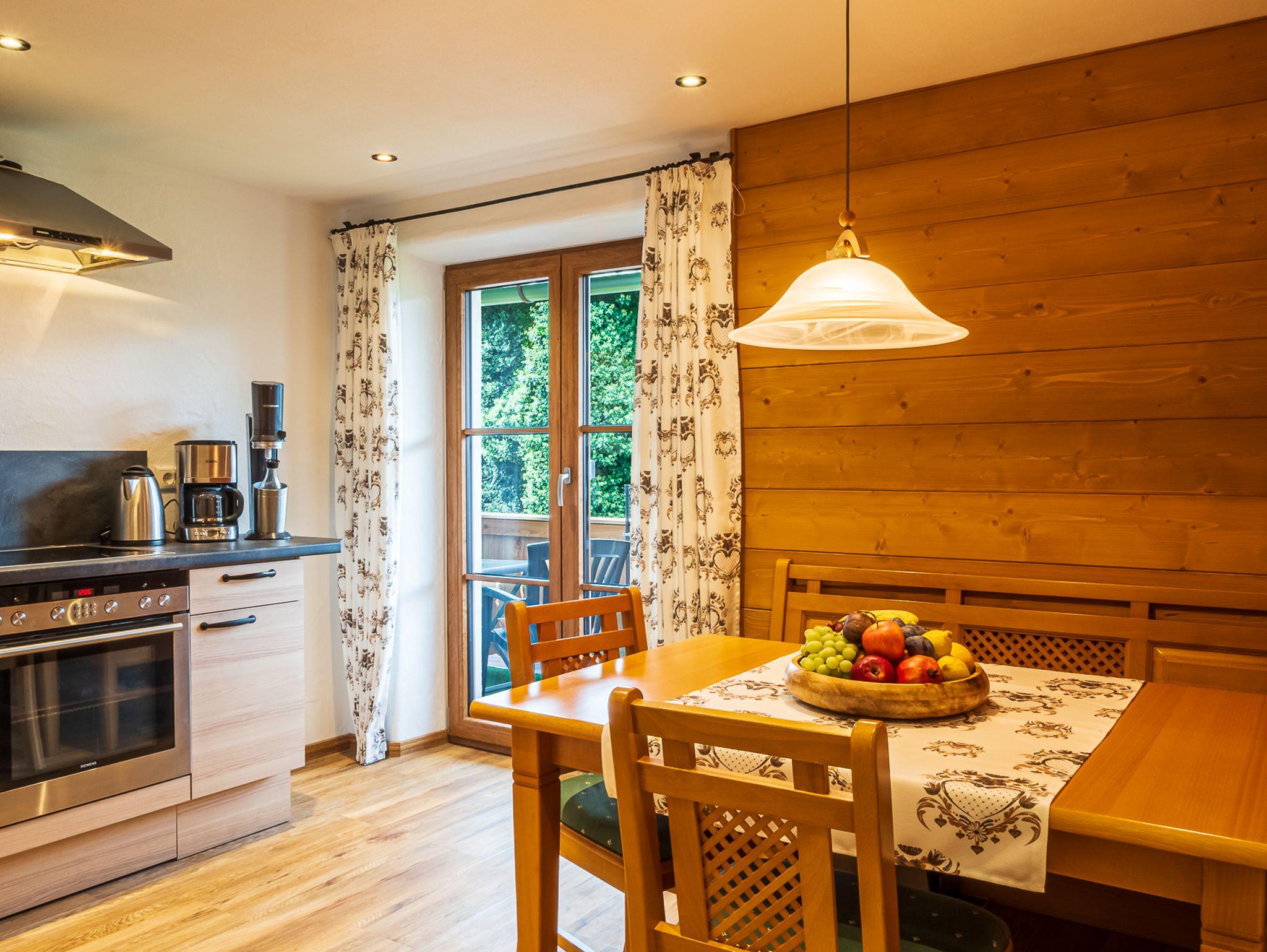 Die im Sommer 2023 renovierte Ferienwohnung Untersberg bietet Platz für bis zu 4 Personen. Neben den beiden Schlafzimmern für jeweils 2 Personen ist die Wohnung mit einer gemütlichen Wohnküche mit Eckbank und einem Badezimmer mit begehbarer Dusche und WC ausgestattet. Auf dem sonnigen Balkon können Sie herrliche Sonnenuntergänge mit Blick auf die Berchtesgadener Berge genießen. Für unsere Gäste stehen kostenloses WLAN, sowie hauseigene Parkplätze zur Verfügung.
