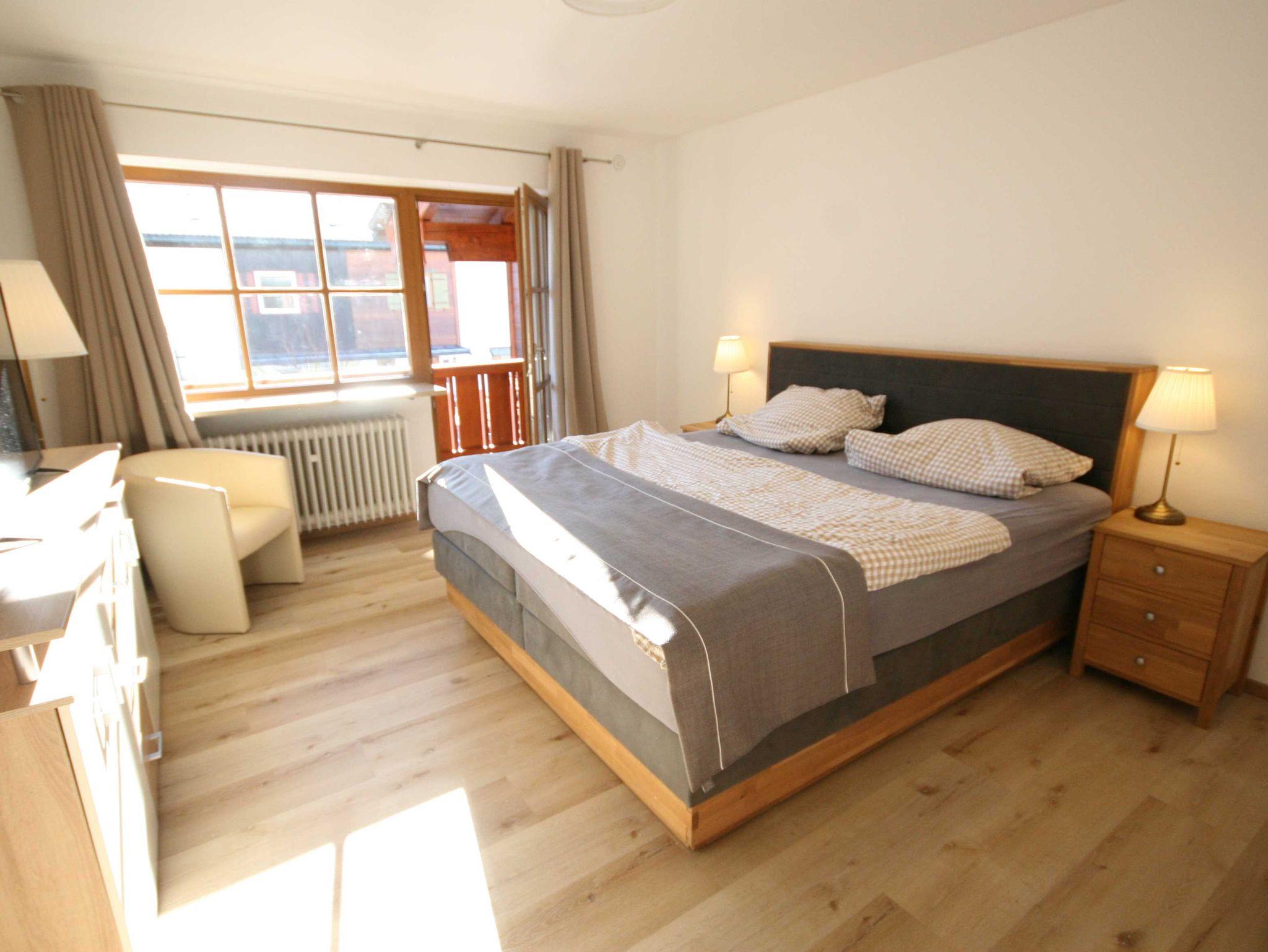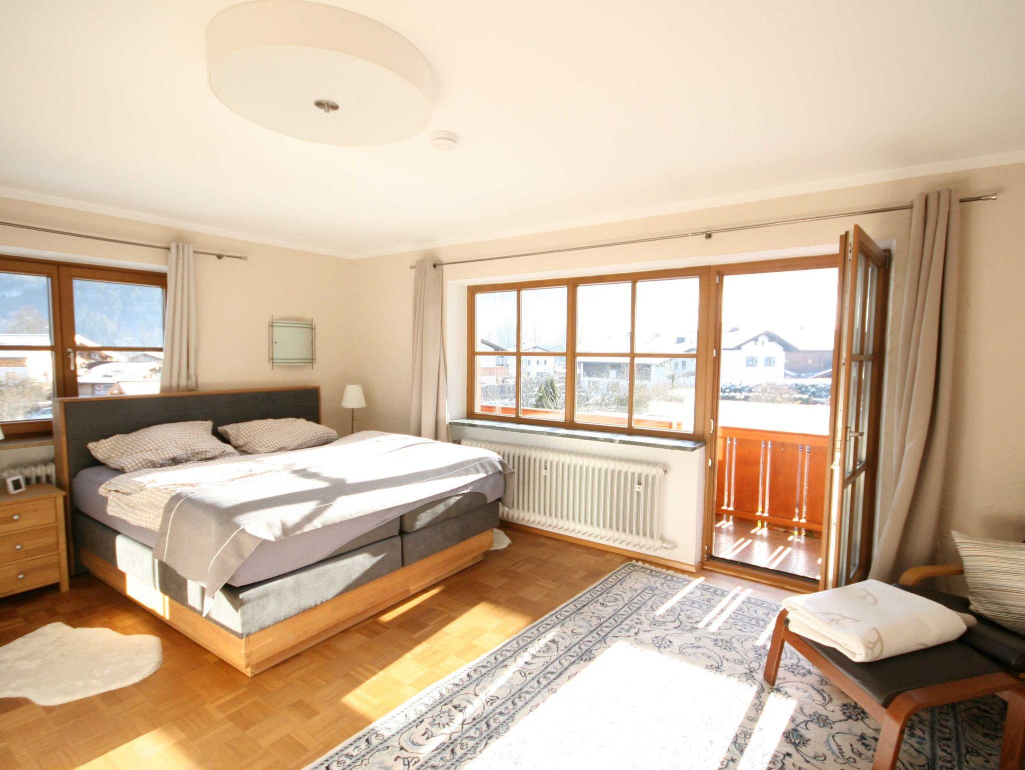 Drei von vier Schlafzimmern sind mit hochwertigen Boxspringbetten ausgestattet, sämtliche Schlafräume verfügen über Balkonzugang. Im Erdgeschoss führt über den Wohn- und Essbereich ein Zugang zu der großen Sonnenterrasse mit Blick auf das Bergpanorama Kehlstein/ Jenner/ Hohes Brett/ Hoher Göll. Im Sommer lädt eine große Loungegarnitur und Sitz- sowie Essmöbel zum Verweilen und Grillen ein. Eine Sonnenmarkise- und Schirm sorgen für genug Beschattung.