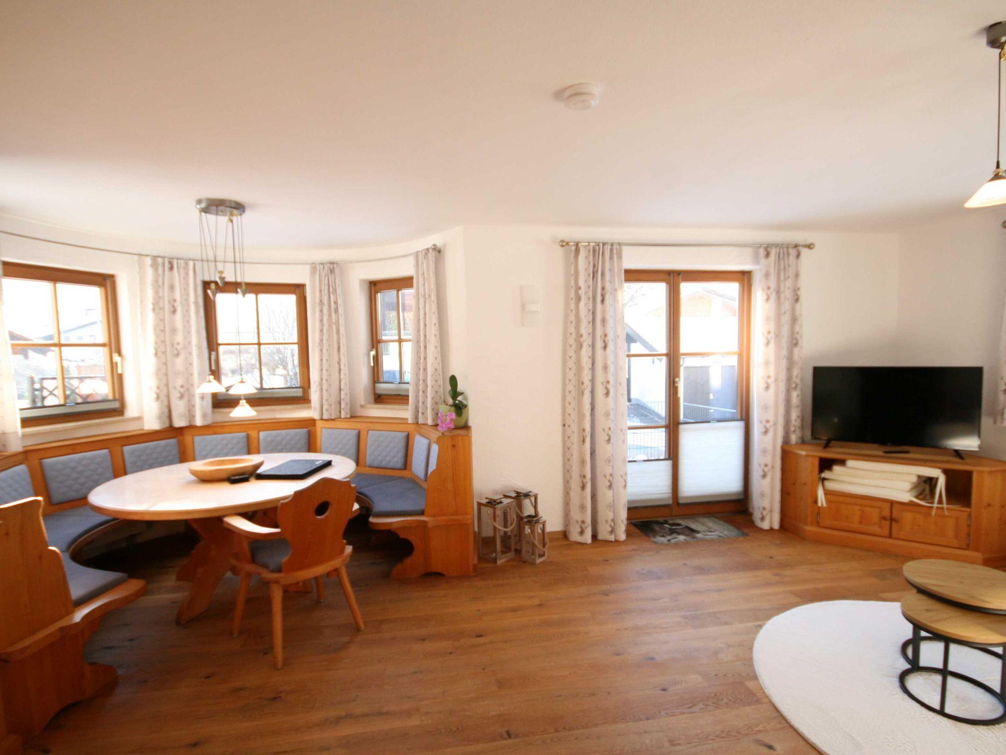 Liebevoll eingerichtete 79 Quadratmeter erwarten Sie in der Alpenzeit. Ein großzügiger Wohn- und Essbereich mit Erker und Zugang zu Terrasse und Garten mit Bergpanorama laden dazu ein, den Tag entspannt ausklingen zu lassen. Im Sommer steht ein Grill zur Verfügung, eine Markise sorgt für genug Beschattung