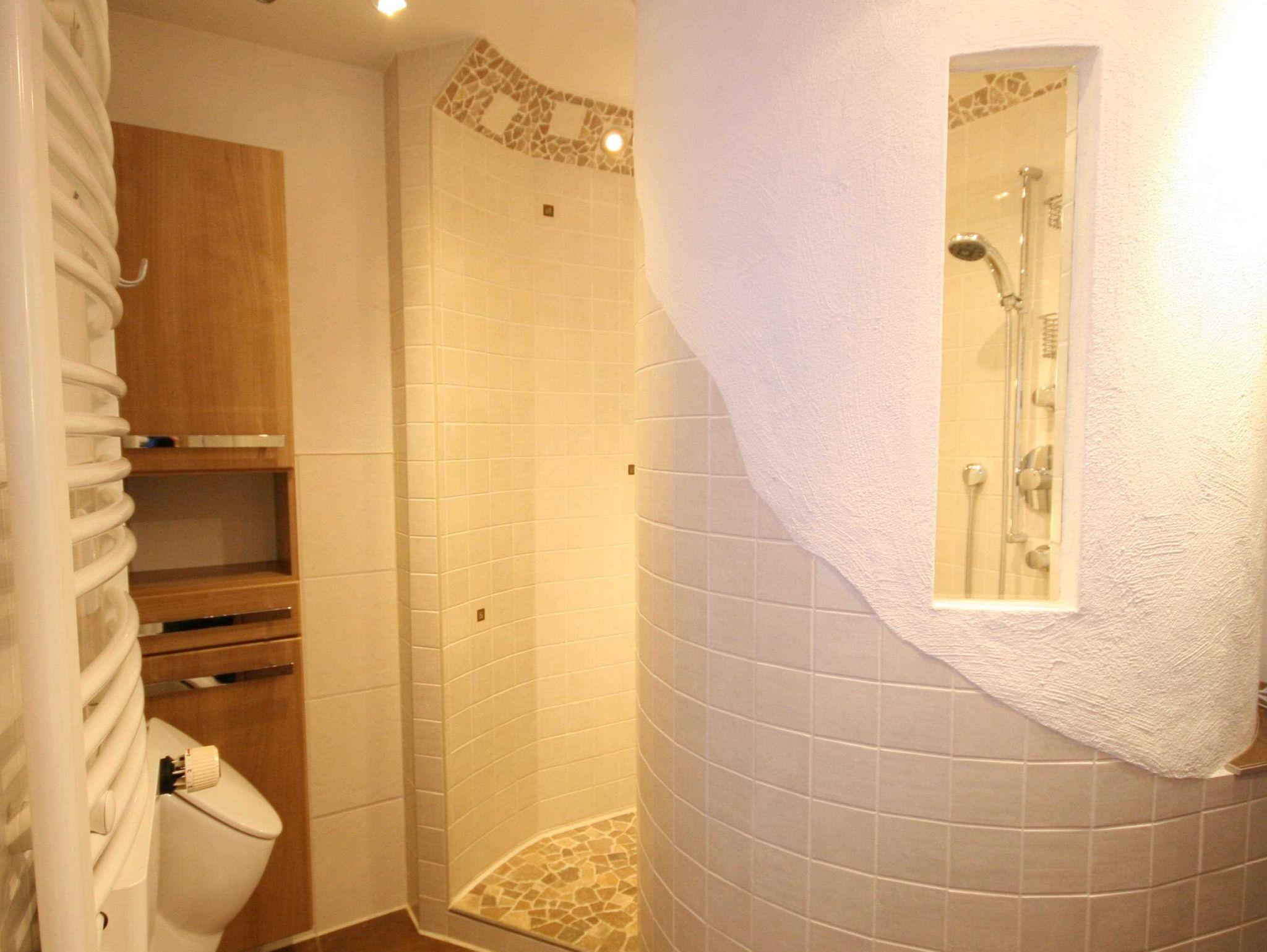 Die Alpenoase verfügt über einen großzügigen Sauna- und Ruhebereich mit Schwalldusche und Tageslichtfenster.