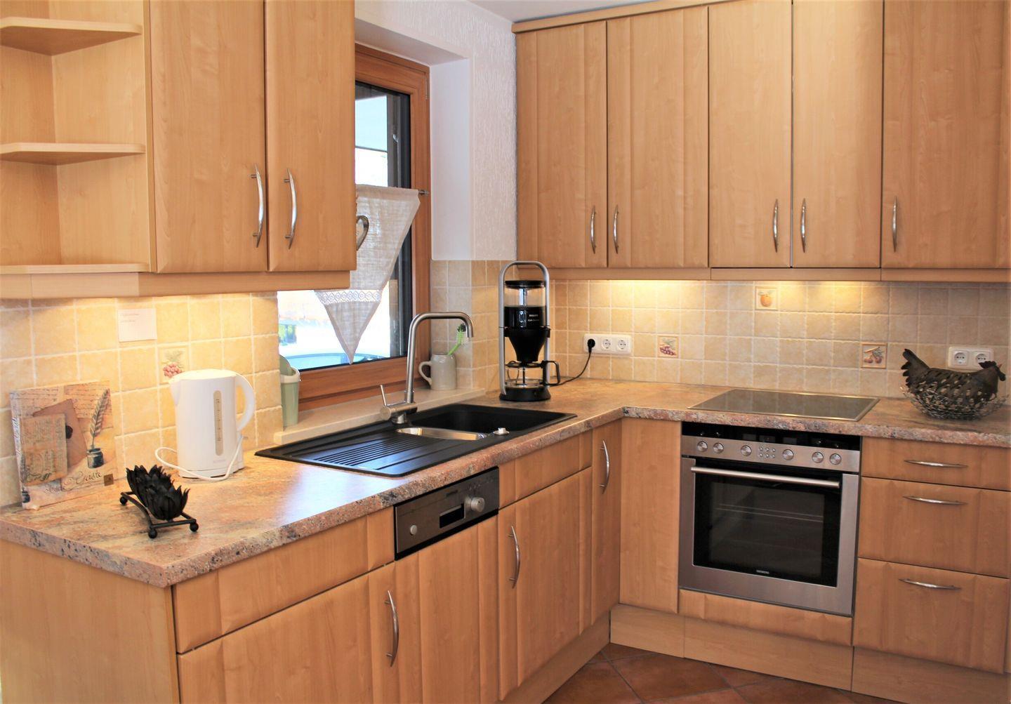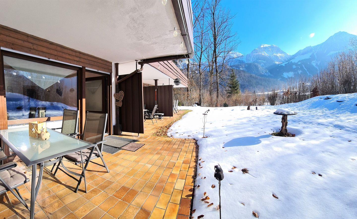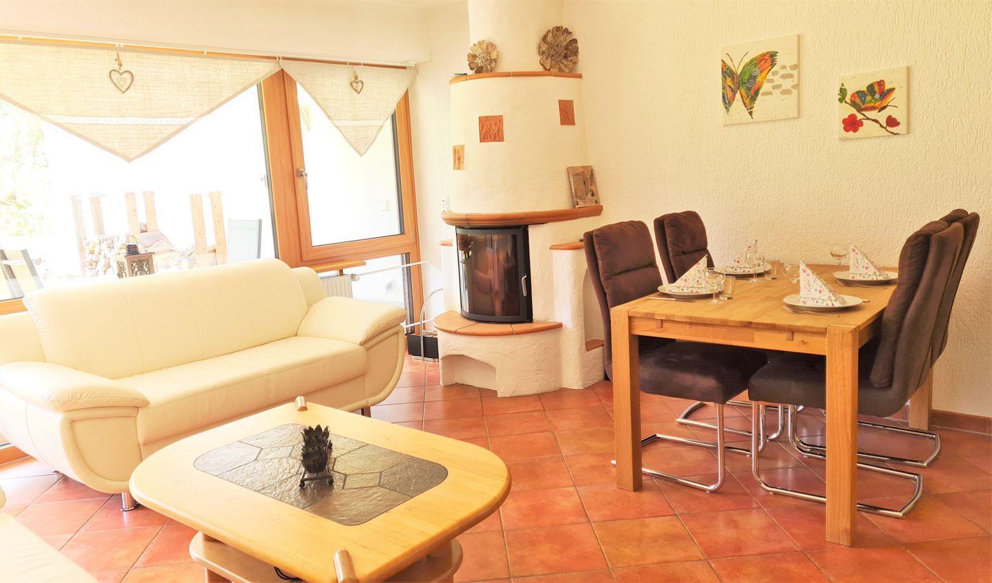 Die Fewo Bergpanorama befindet sich im EG des Hauses. Neben zwei Schlafzimmern und Bad mit Dusche/WC verfügt die Wohnung auch über eine voll ausgestattete Wohnküche. Highlight ist der schöne Kachelofen, der besonders im Winter für wohlige Wärme sorgt. Vom Wohnzimmer aus gelangen Sie auf die Südterrasse, wo Ihnen Gartenmöbel und für laue Sommerabende ein Elektrogrill zur Verfügung stehen. WLAN und Garagen-Parkplatz inklusive. Ein Schlafzimmer und das Badezimmer befinden sich im Souterrain.
