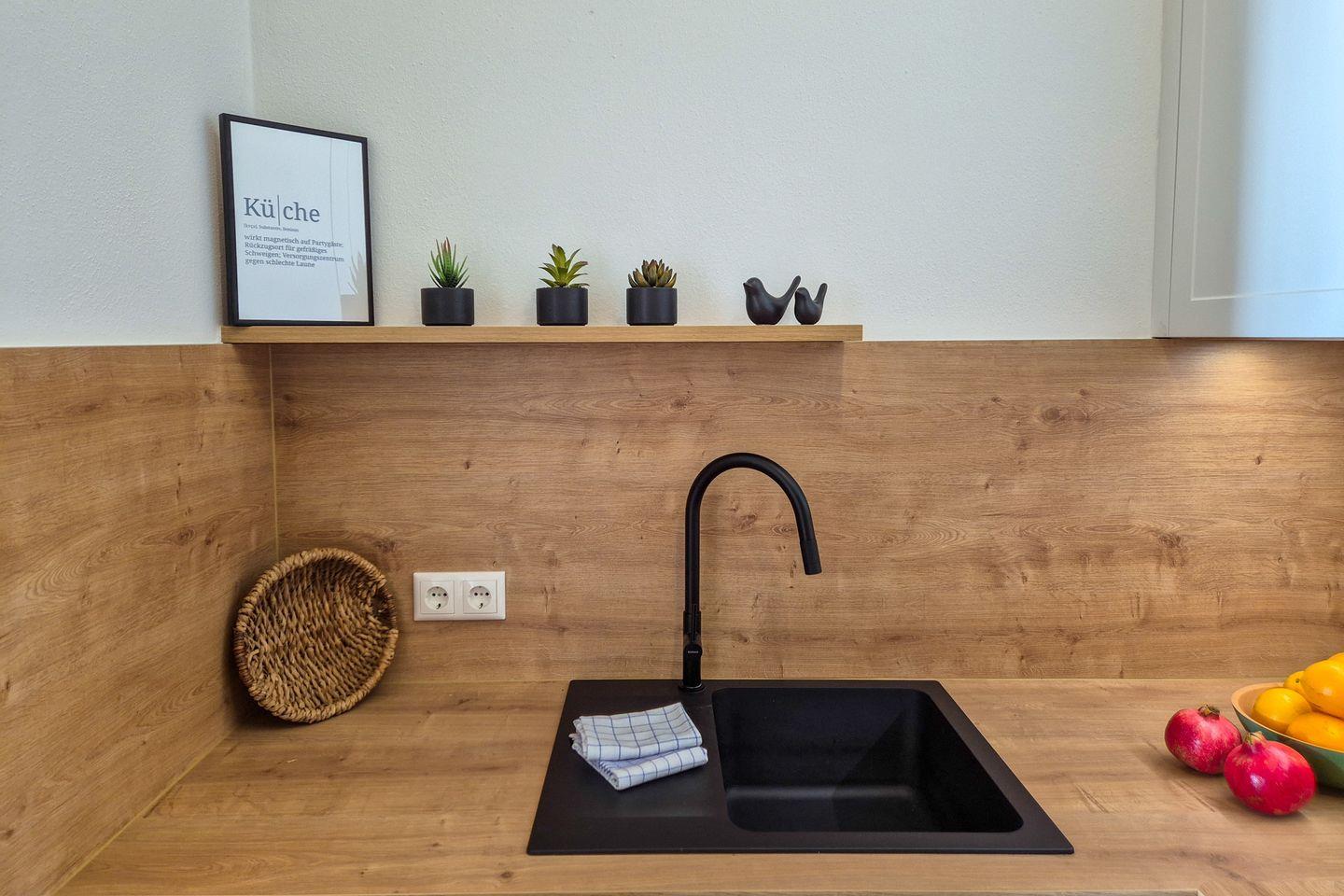 Das separate Schlafzimmer ist mit einem komfortablen Doppelbett und Kleiderschrank ausgestattet. Im gemütlichen Wohnzimmer laden eine bequeme Sofaecke mit Flachbild-TV und ein Esstisch zum Verweilen ein. Die voll ausgestattete Küche bietet alles, was Sie zum Kochen und Genießen brauchen – von Ceranherd, Backofen und Spülmaschine bis hin zu Mikrowelle, Kühlschrank mit Gefrierfach, Kaffeemaschine, Nespresso-Maschine, Wasserkocher und Toaster. Das moderne Bad verfügt über eine ebenerdige Dusche, WC und Haartrockner.