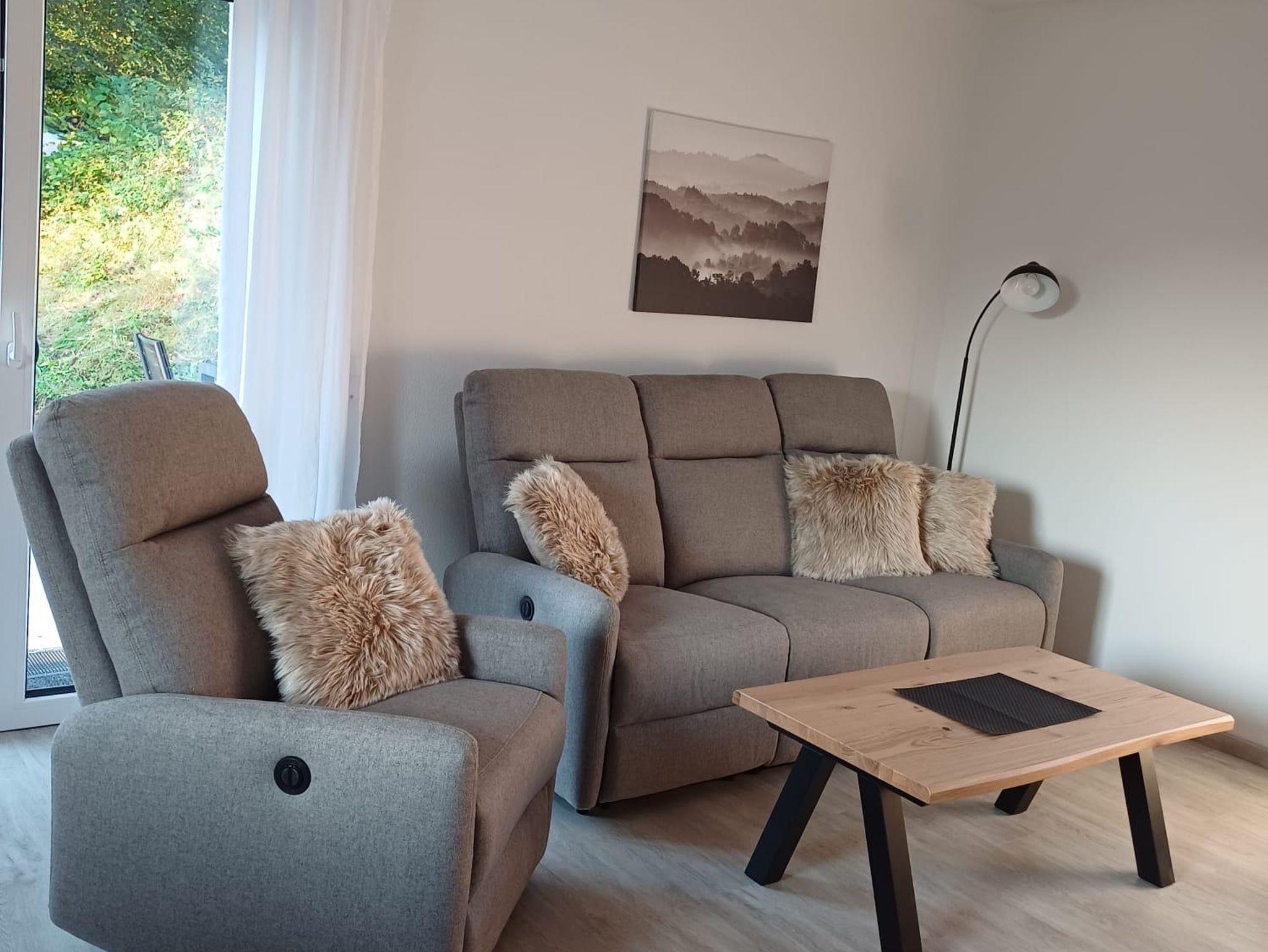 • Wohnbereich mit Couch und Sessel (elektrisch verstellbar), sowie kleiner Tisch