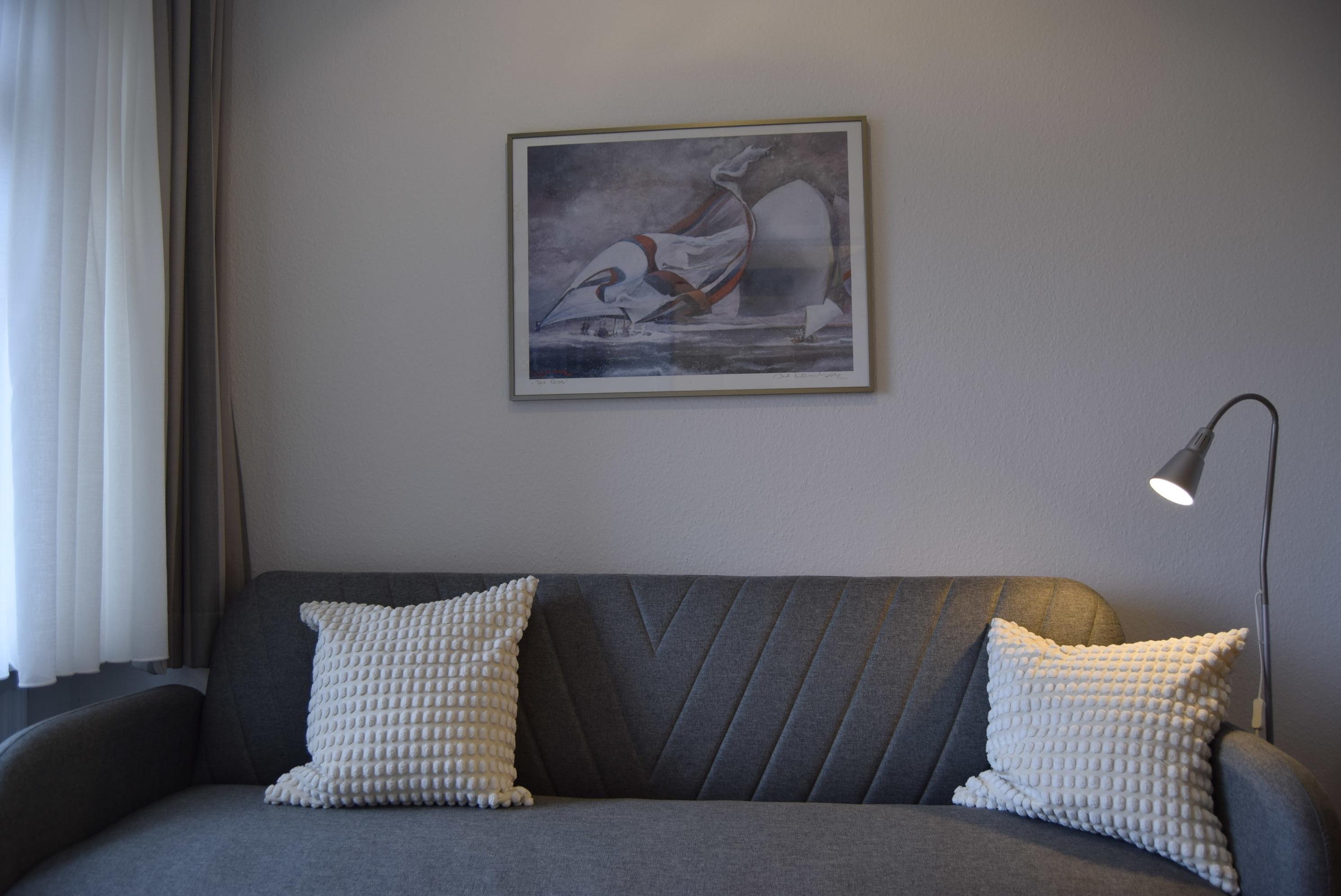 Unsere Nichtraucherwohnung befindet sich im Haus "Seelust ", im 1. OG links. Der dazugehörige Parkplatz Nr. 15 steht Ihnen während lhres Aufenthaltes kostenlos zur Verfügung. Die Wohnung verfügt über ein großzügiges Wohn- und Esszimmer mit einer gemütlichen Sitzgarnitur, in der Sie entspannte Filmabende vor dem Ambilight-Fernseher (Bilddiagonale 108 cm) verbringen können. In der modernen und bestens ausgestatteten Küche lässt sich Ihr Lieblingsessen einfach und schnell zaubern. Im Schlafzimmer bietet ein großer Schrank Platz für ausreichend Stauraum. Das gemütliche Doppelbett sorgt für einen erholsamen Schlaf. Ein weiteres Zimmer mit seitlichem Meerblick verfügt über ein separates Schlafsofa. Das stilvolle Badezimmer ist mit einer Regendusche, einem großzügigen Waschtisch sowie Handtuchwärmer und Föhn ausgestattet. Ein separater abschließbarer Abstellraum im Gemeinschaftskeller steht Ihnen z.B. für Ihre Fahrräder