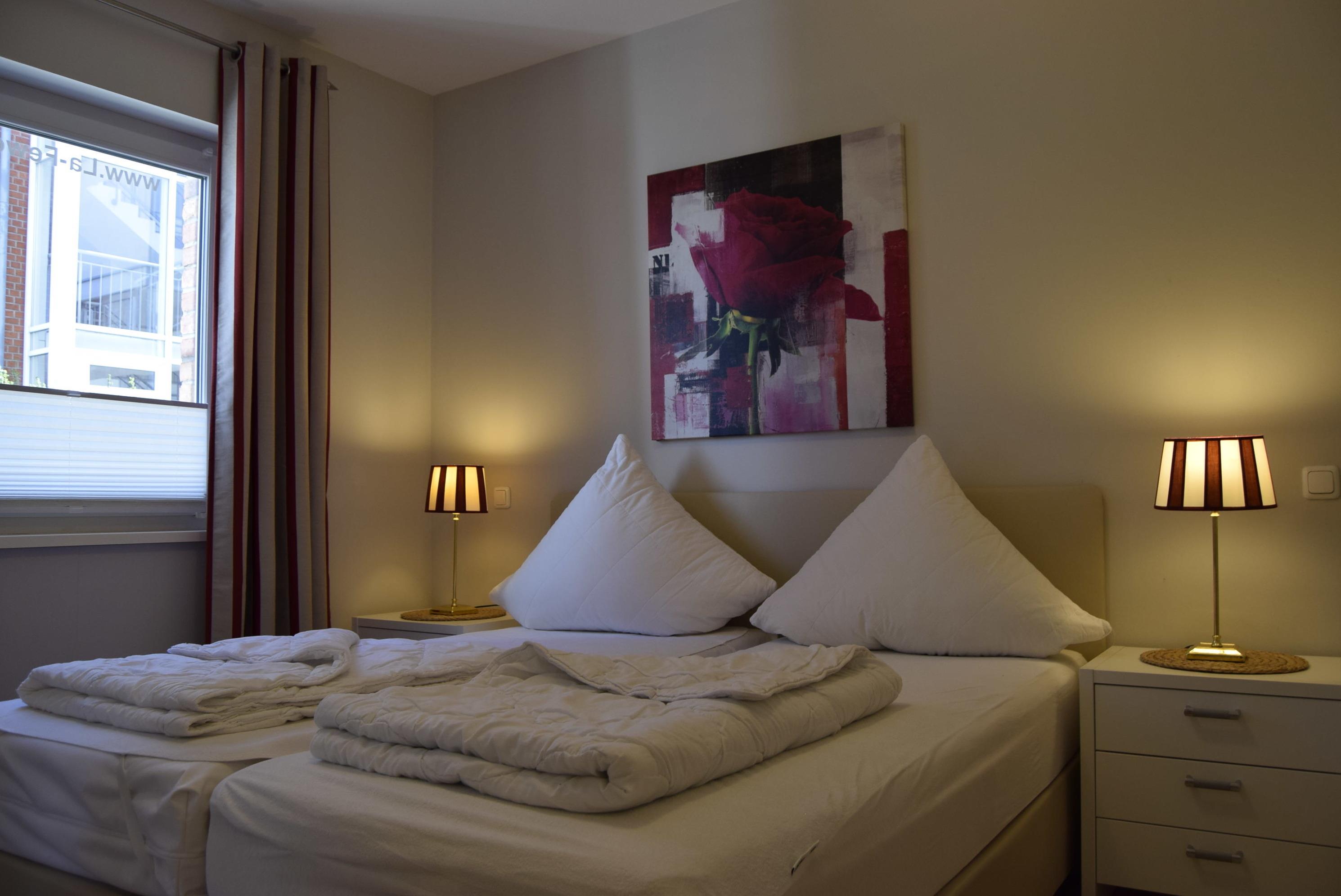 Die Strandentfernung zum feinsandigen Sandstrand beträgt ca. 100 m. Das Appartement für bis zu 4 Personen und einer Wohnfläche von 44 qm besteht aus einem großen Wohnzimmer mit gemütlicher Schlafcouch, einer komplett eingerichteten Küchenzeile, einem Schlafzimmer, einem Duschbad mit Handtuchheizung und einer Diele. Die komplette Wohnung verfügt über Fußbodenheizung, alle Fenster sind mit Außenjalousien ausgestattet. Eine große Südterrasse - ca. 12 qm - mit Gartenmöbeln runden das Angebot ab. Zur Wohnung gehört ein abschließbarer Abstellraum für Fahrräder, Bollerwagen, usw. sowie ein für Sie reservierter Kfz-Stellplatz.