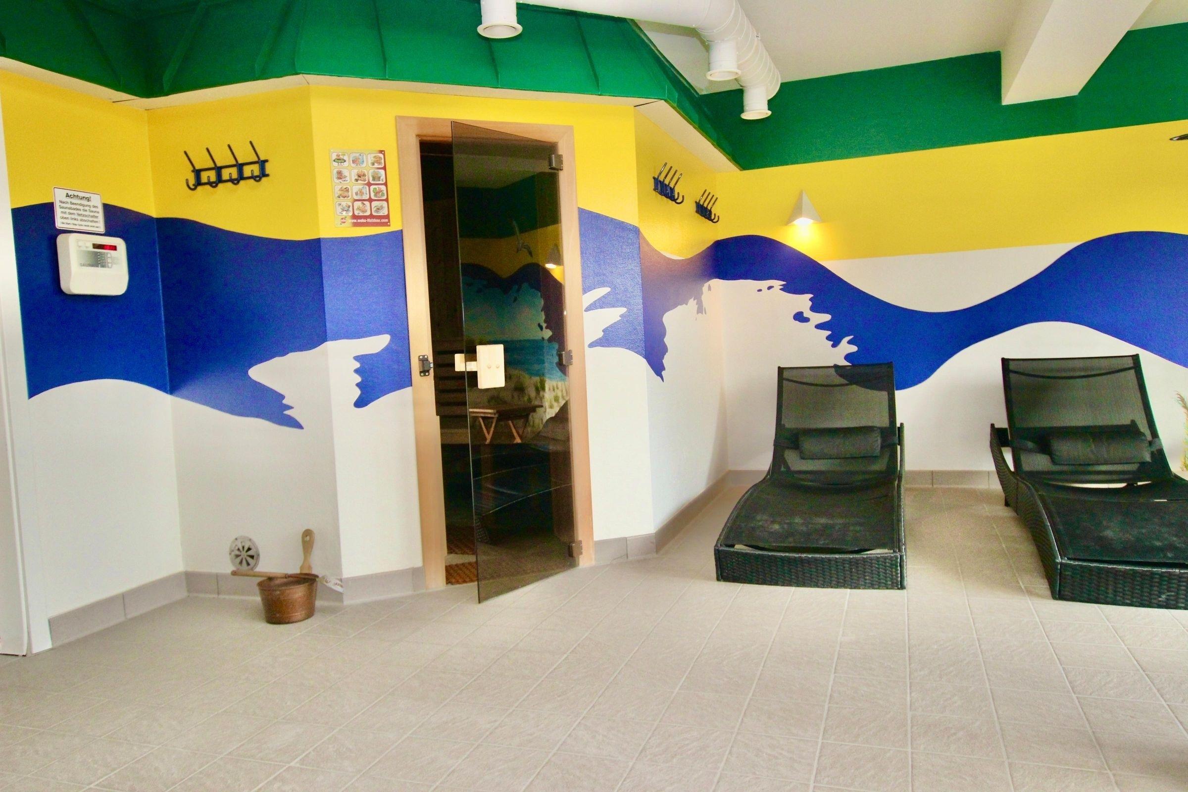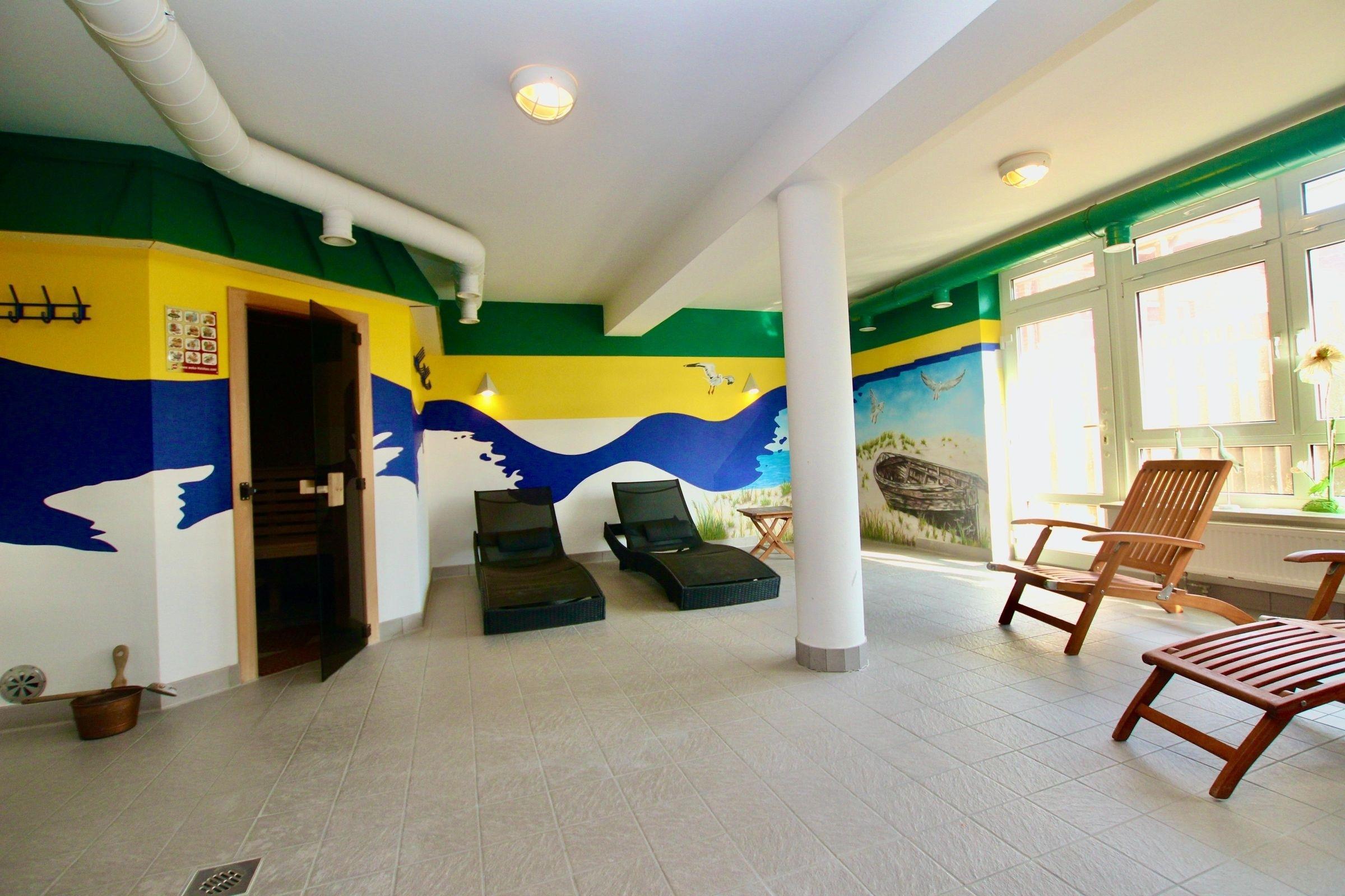 Im gemeinschaftlich nutzbaren Wellnessbereich erwartet Sie eine finnische Sauna und eine Infrarotkabine. Auch den angrenzenden gut ausgestatteten Fitnessraum (u.A. mit Tischtennisplatte) dürfen Sie gerne kostenfrei nutzen.