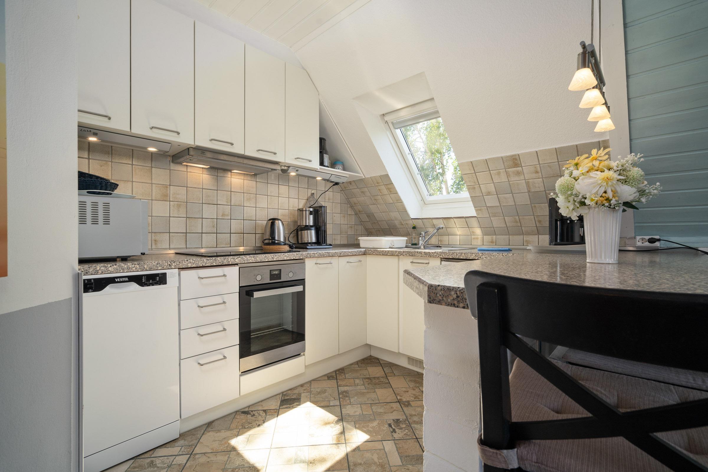 Es empfängt Sie ein gemütlicher Wohn/ Essbereich und eine mit allem Komfort ausgestattete, offene Küchenzeile. Die Raumspartreppe kann von beiden Seiten durch ein Schutzgitter gesichert werden. Das helle Schlafzimmer ist mit einem Doppelbett sowie einem großem Kleiderschrank ausgestattet. Zwei weitere Betten befinden sich in der Galerie im Dachgeschoss. Fernseher, DVD-Player, Stereoanlage und WLAN sorgen für ausreichend Unterhaltung.