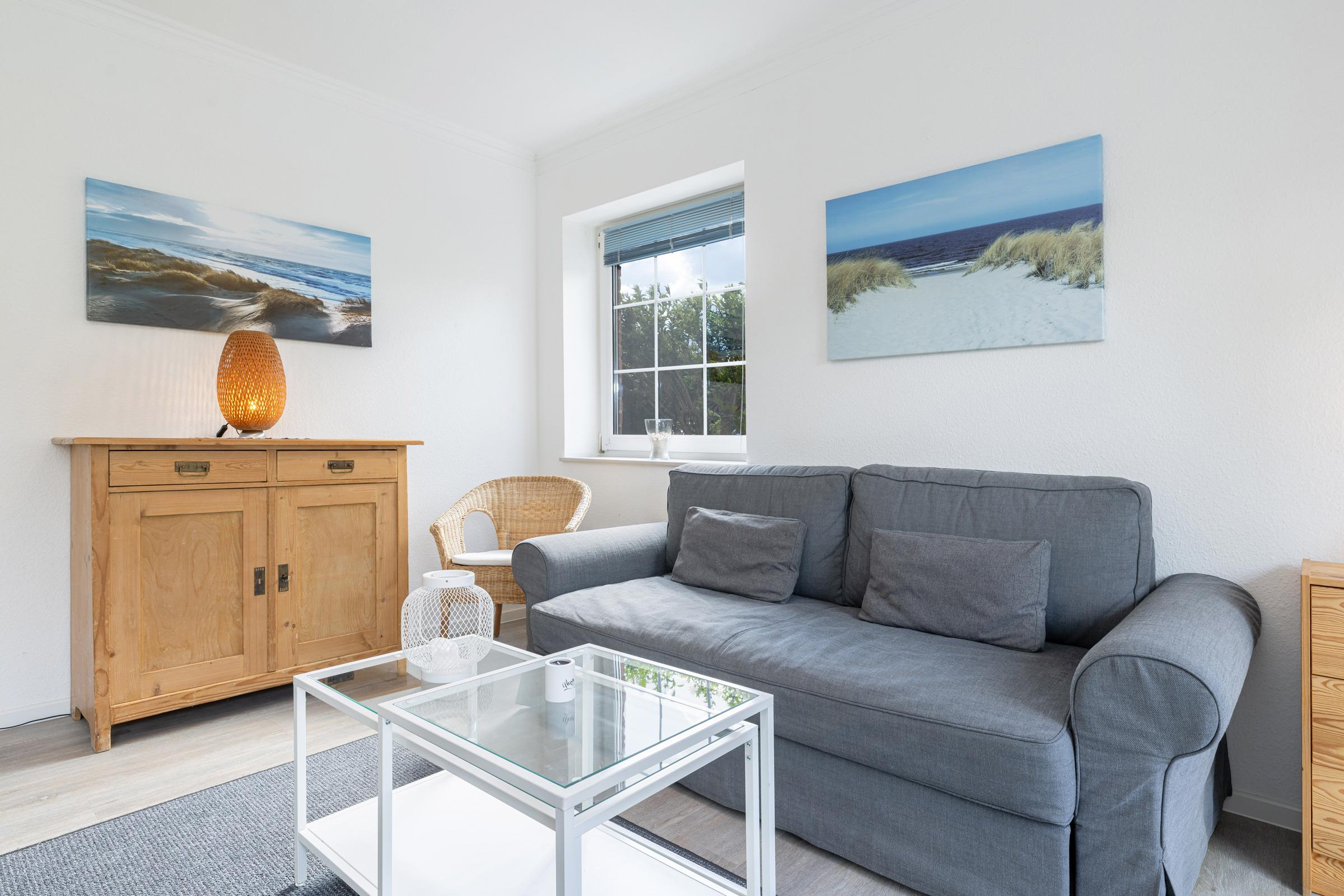 Das separate Schlafzimmer mit einem Doppelbett, der Wohnbereich mit Pantry-Küche und das Bad verteilen sich auf einer Ebene. Vom hellen Wohnzimmer haben Sie einen direkten Zugang auf die große sonnige Terrasse. Was gibt es Schöneres, als an der frischen Ostseeluft in gemütlichen Gartenmöbeln das morgendliche Frühstück zu genießen oder den Abend bei einem Glas Wein ausklingen zu lassen? Ein WLAN–Anschluss ist hier selbstverständlich inklusive.