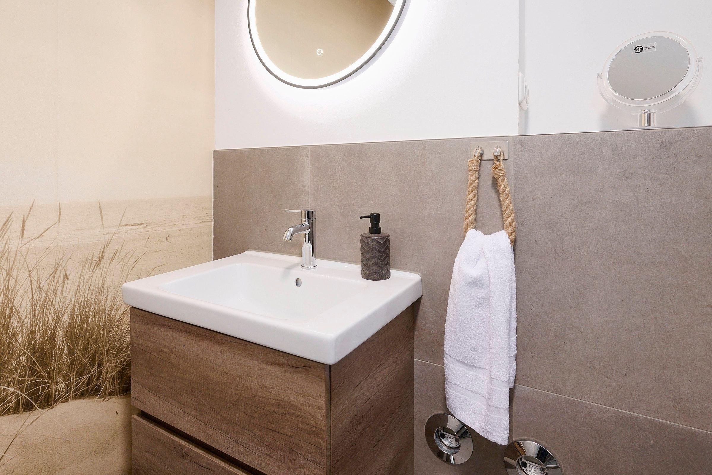 Vom großzügigen, lichtdurchfluteten Wohnzimmer können Sie direkt auf die zur Sonnenseite gerichtete Terrasse treten, die mit bequemen Gartenmöbeln und einen Grill ausgestattet ist. Die mit allem Komfort ausgestattete Küche lässt keine Wünsche offen. Das Duschbad ist mit einem Handtuchwärmer, Kosmetikspiegel und einen Fön ausgestattet. Die Fußbodenerwärmung sorgt hier für wohlige Wärme. WLAN ist inklusive.