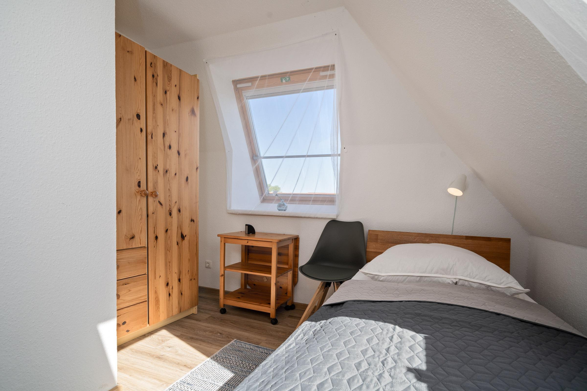 Schlafzimmer 1 (DG): 1 Doppelbett (2x 90x200 cm), Kommode, Verdunkelung: Rollo