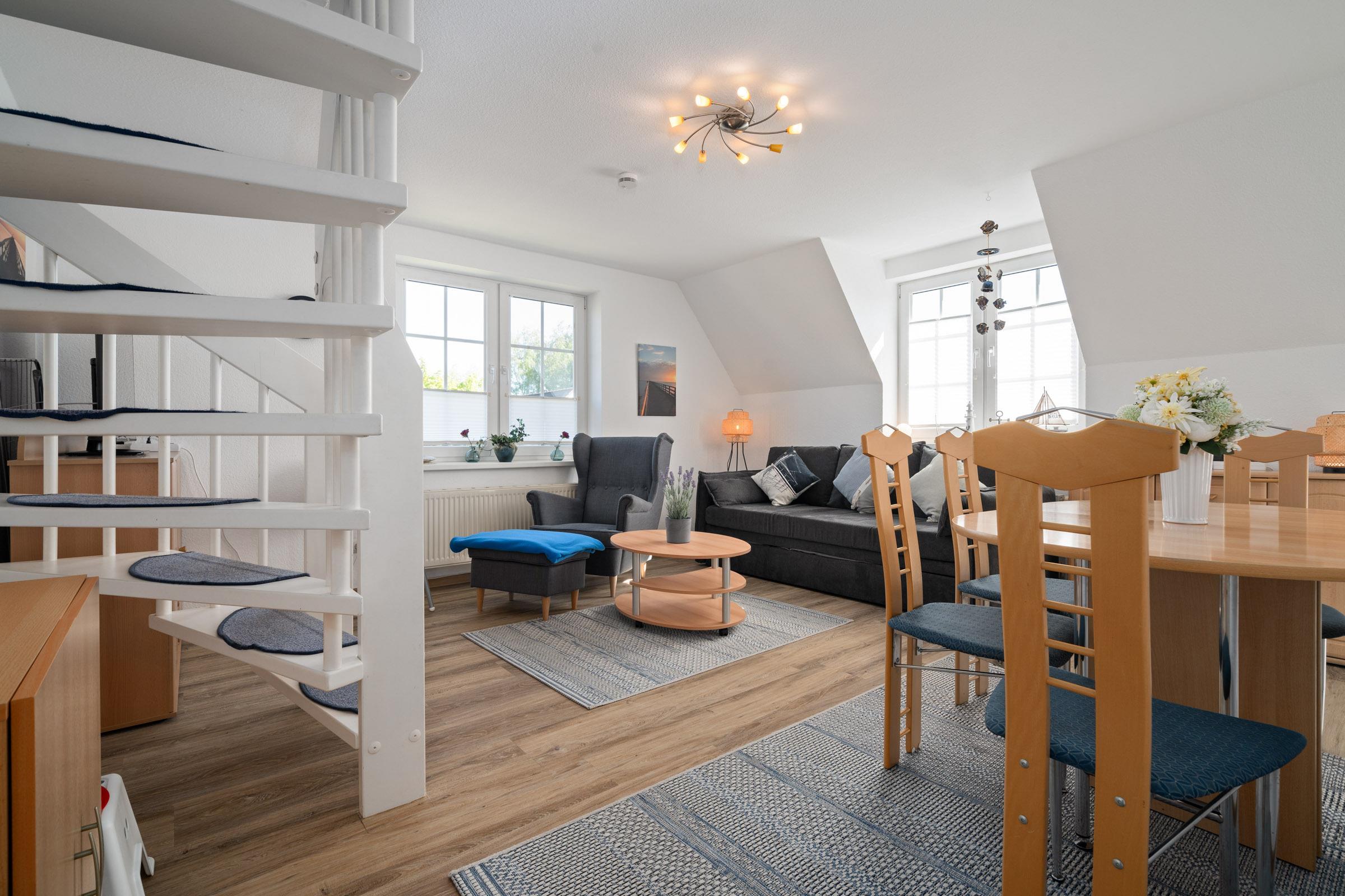 Die 3-Zimmer-Ferienwohnung Seebrise empfängt Sie im Maisonette-Stil und bietet auf ca. 53 qm² Platz für bis zu 4 Personen zum wohlfühlen und entspannen. Zum feinsandigen Ostseestrand sind es nur ca. 250 m.