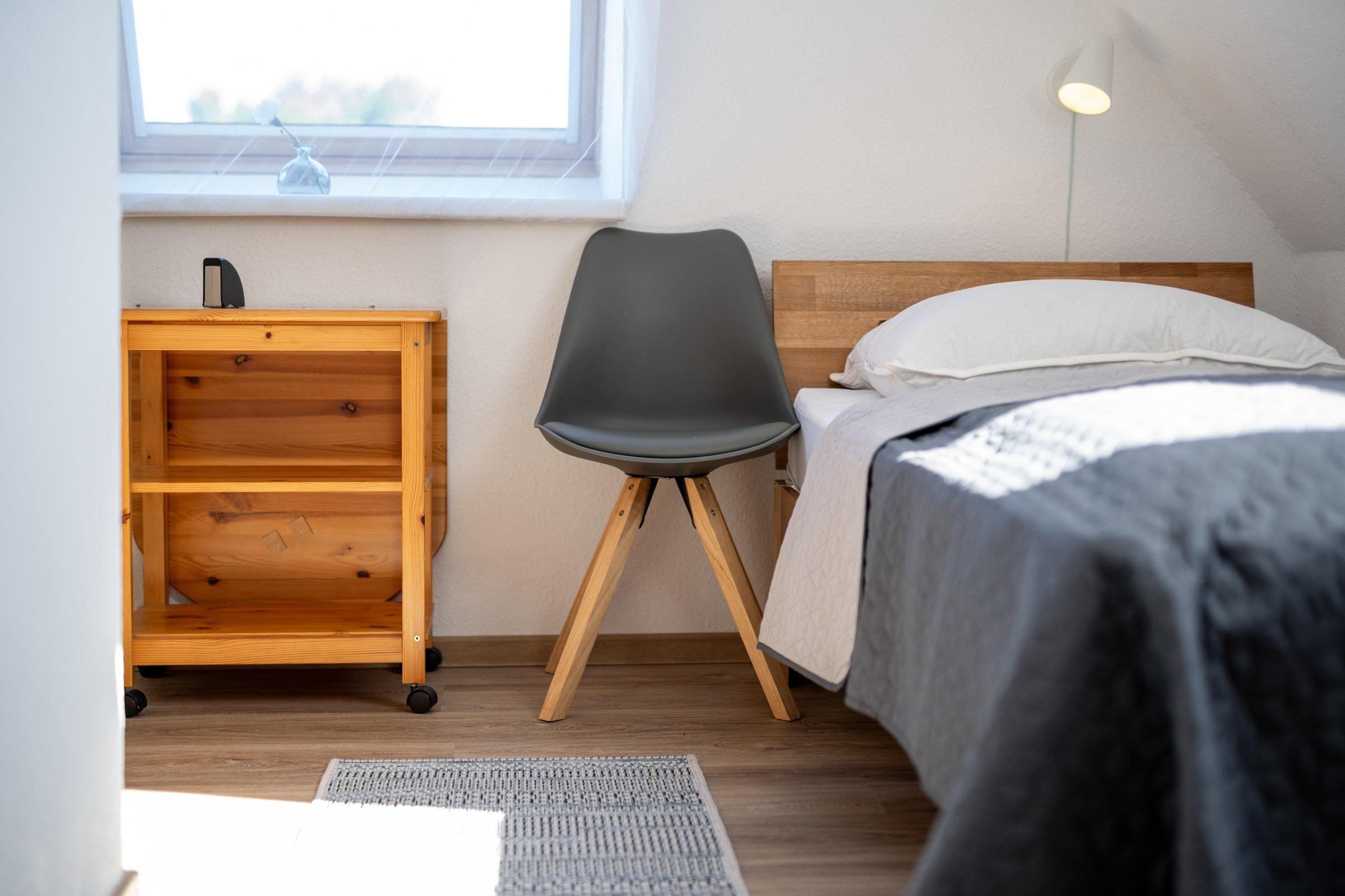 Im Dachgeschoss befinden sich die zwei separaten Schlafzimmer mit einen Doppelbett und 2 Einzelbetten. WLAN ist hier selbstverständlich inklusive.