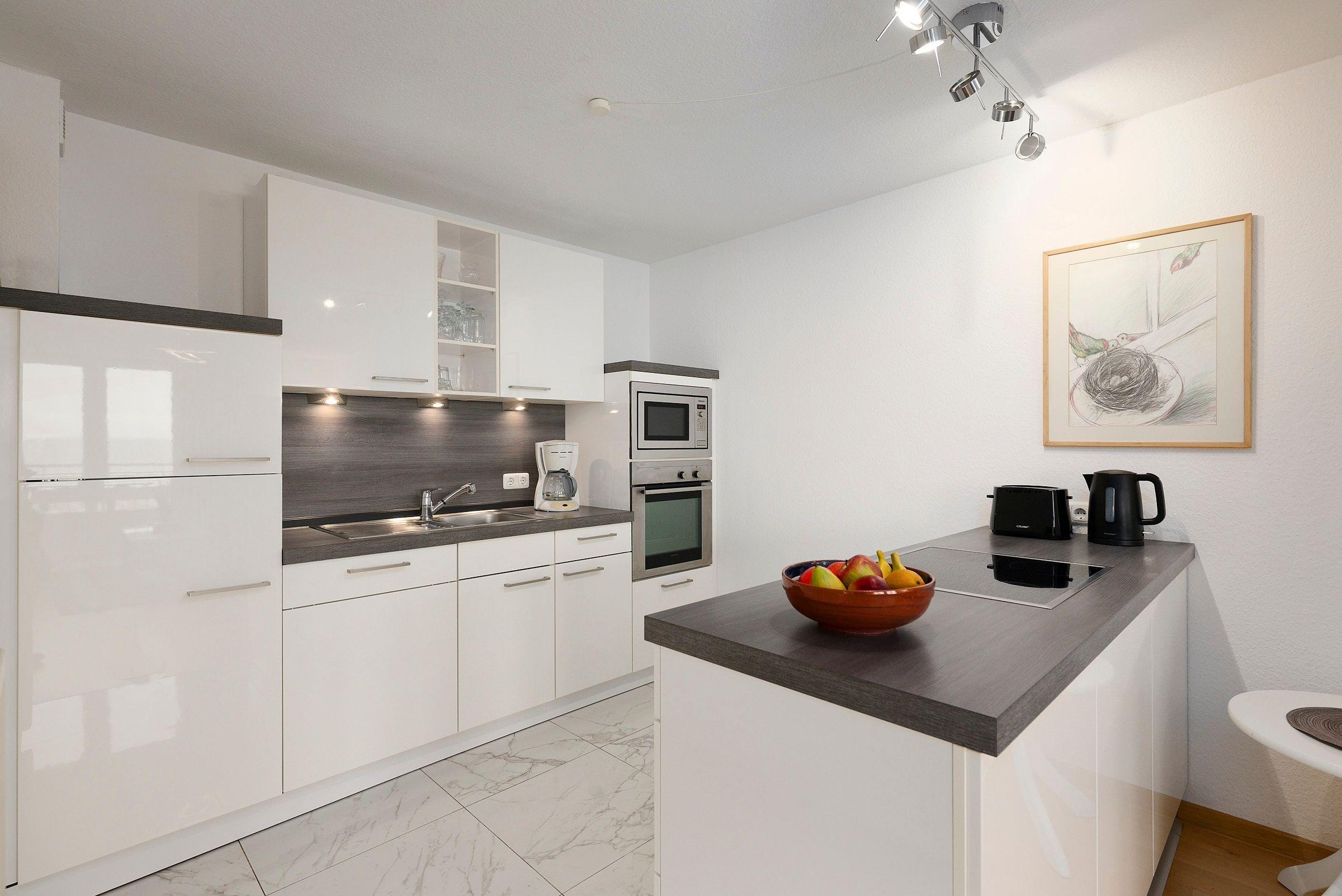 Das Wohnzimmer ist mit einer Schlafcouch (160x200cm), einem grossen modernen Flachbildfernseher, Mini-Stereoanlage, DVD-Player und einem kostenfreien Wlan-Anschluss ausgestattet. Die wohlige Wärme aus dem Kaminofen sorgt für Gemütlichkeit und ist ein weiteres Highlight Ihrer Ferienwohnung. Das Duschbad verfügt über eine Regendusche, Handtuchwärmer und Fön.