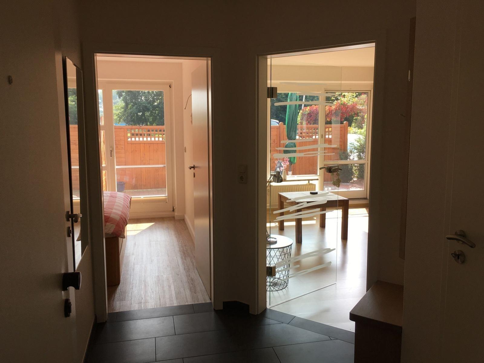 Sie bietet auf 51qm Platz für zwei Erwachsene und ein Kind. Sie verfügt über ein Schlafzimmer (10,7 qm), ein gemütliches Wohnzimmer mit offener Küche und ein Bad (3,8 qm) mit WC und Dusche. Die voll ausgestattete Küche enthält ein Cerankochfeld, Backofen, Mikrowelle, Kaffeemaschine, Toaster, Wasserkocher und eine Kühl-/Gefrierkombination. Die Ferienwohnung liegt im Erdgeschoss und Sie haben vom Wohnzimmer und Schlafzimmer direkten Zugang auf die grosszügige Südwestterrasse. Auf der Terrasse stehen Ihnen 4 Stühle, ein Tisch, ein Sonnenschirm und zwei Sonnenliegen für einen entspannten und erholsamen Urlaub zur Verfügung.