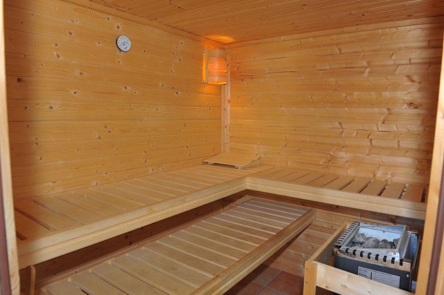 Das absolute Highlight ist unsere Sauna, in der du dich nach einem ereignisreichen Tag entspannen und neue Energie tanken kannst. Die Sauna bietet Platz für bis zu vier Personen und ist ein Ort der puren Erholung.