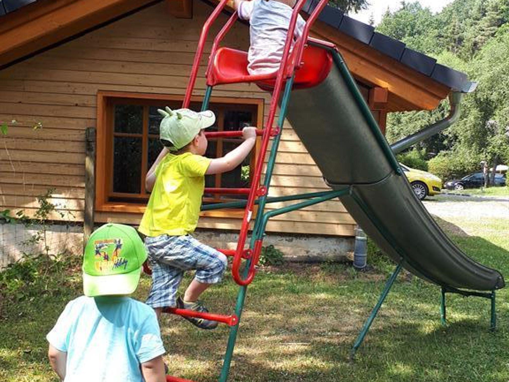 Im Spielhaus gibt es ein Klettergerüst für die Kleinen und viele nette Spielsachen die zum gemeinsamen Spiel einladen. Im Außenbereich Rutsche und Schaukeln.