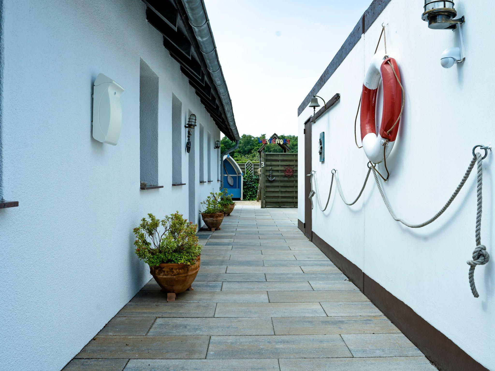Das mit 3-Sternen klassifizierte Nichtraucher-Reihenhaus Kogge mit seinen 3 Wohneinheiten liegt in einer ruhigen Straße von Schönhagen und ist nur wenige Meter vom Ostseestrand entfernt. Jede Wohneinheit verfügt über ca. 60m² Wohnfläche und ist für 4 Personen plus Kleinkind geeignet. Im Erdgeschoss befindet sich jeweils das Wohnzimmer mit Essbereich, eine separate Küche und ein Duschbad. Die beiden Schlafzimmer mit einem Doppelbett bzw. 2 hintereinander stehenden Betten befinden im Obergeschoss. Auf der möblierten Terrasse und im kleinen Garten kann man die schönen Tage genießen. Der WLAN-Anschluss steht den Gästen kostenfrei zur Verfügung.
