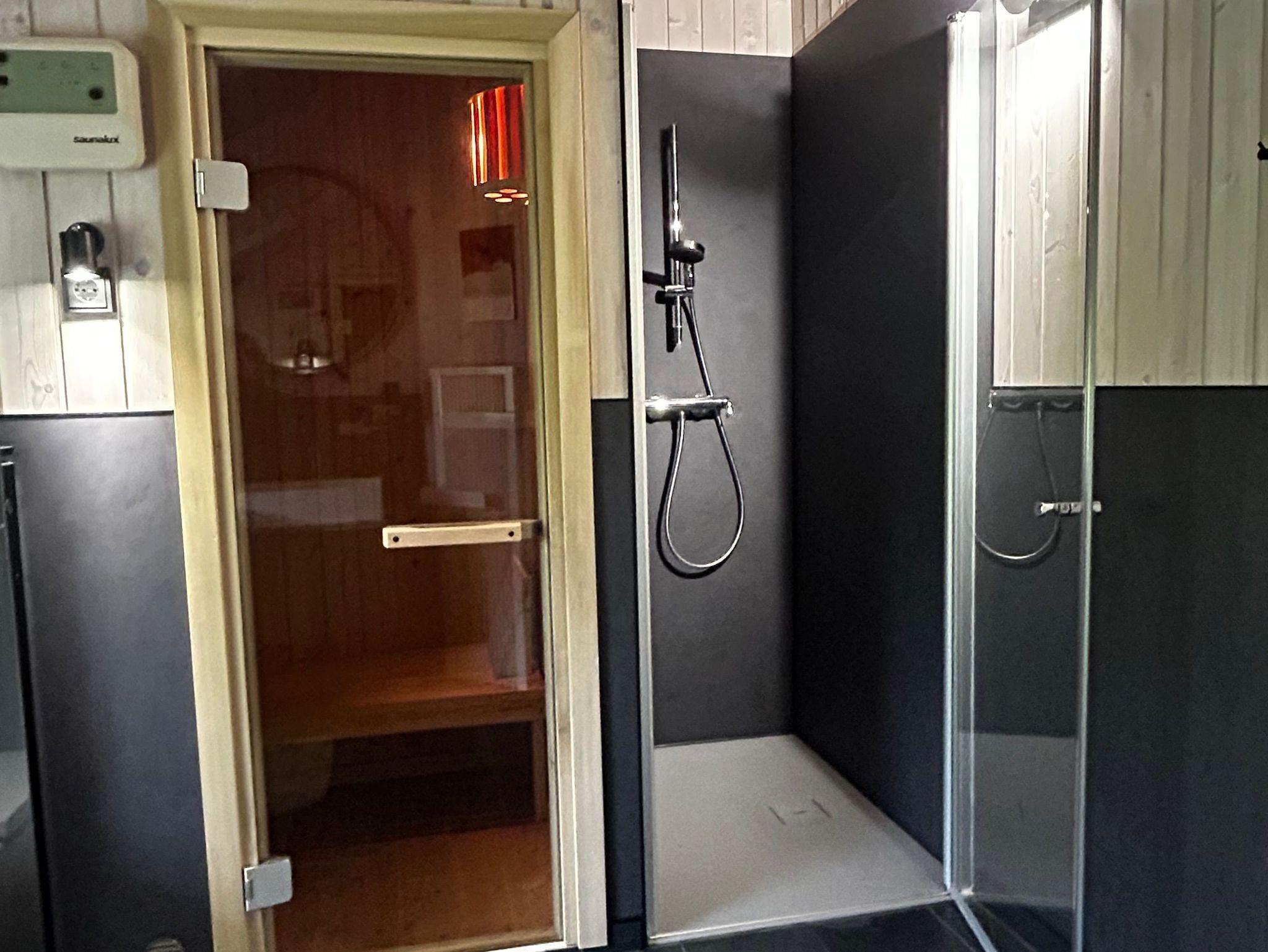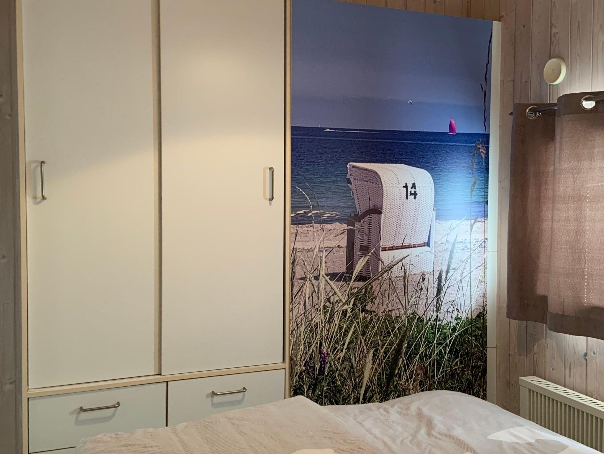 Ein Eltern-Schlafzimmer ist mit einem Doppelbett (Breite 1,60 m mit 2 Matratzen) und zweites Kinder-Schlafzimmer ist mit einem franz. Doppelbett (Breite 1,40 m) ausgestattet. Zwischen Bett und Schlafzimmerschrank ist ein schmaler Gang, die Möbel wurden der Zimmergröße optimal angepasst. Ein weiteres kleines Zimmer verfügt über eine Schlafcouch für eine Person und kann als Rückzugsort oder zum Relaxen genutzt werden. An kühleren Tagen lädt die Sauna zum Aufwärmen ein.