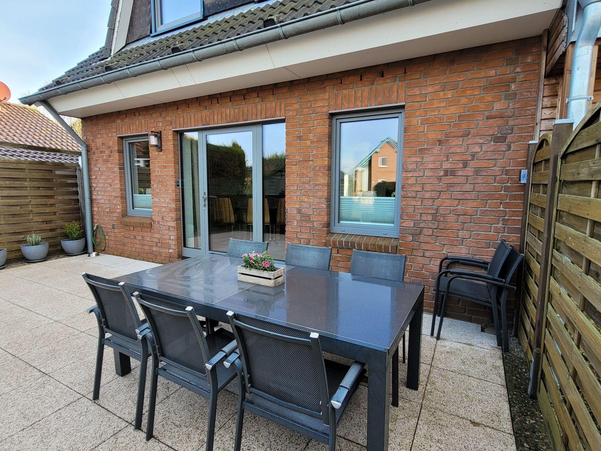 Ein Parkplatz befindet sich direkt auf dem eingezäunten Grundstück, ebenso ein kleiner, abschließbarer Schuppen für mitgebrachte Fahrräder. Die möblierte Terrasse liegt direkt vor dem Wohnzimmerfenster.