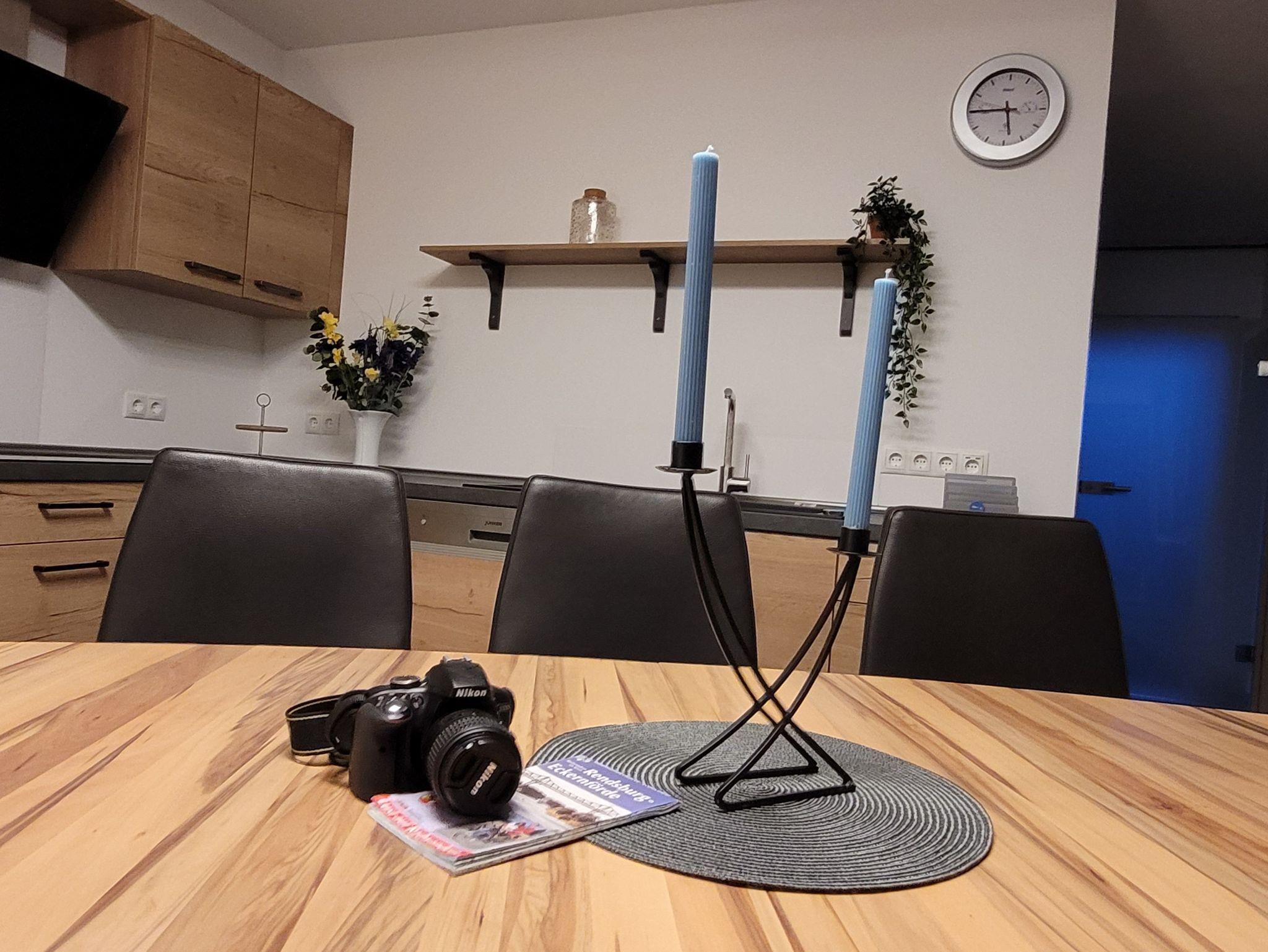 Wenn Sie das Ferienhaus betreten stehen Sie direkt im großzügigen Wohn- Esszimmer mit der offenen Einbauküche. Die moderne Einbauküche verfügt u.a. über eine Geschirrspülmaschine, Backofen, Mikrowelle und Gefriermöglichkeit. Der Raum wird mit einem Pelletofen beheizt.
