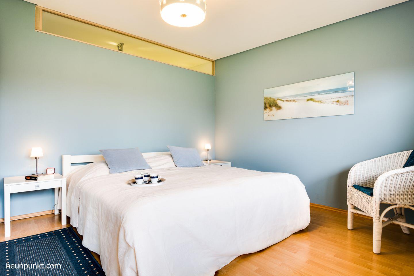 Das schöne helle Schlafzimmer mit Doppelbett bietet viel Komfort. Das Badezimmer bietet auch alles, was Sie im Urlaub brauchen.